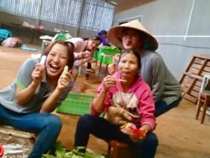 【ベトナム・バンメトート B日程1日】 インターン生のゆりこ・えみかはA日程から継続ですが、今日から新しくあやかが加わります。今朝は、いつものように収穫して、昼過ぎまで選別をしました。