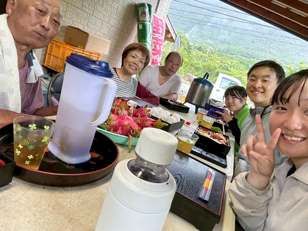 天気が良ければ太陽の下でたっぷりと汗を流し、雨の日はジュース加工の手伝いや、ゲストハウスのリノベーションなど、その時々の「島の仕事」に没頭します。農家さんと一緒にお弁当を食べる昼休憩も、貴重な交流の時間です。
