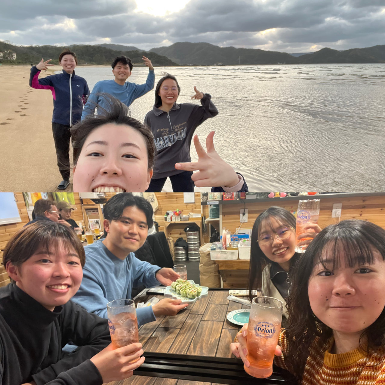 夜はみんなで海に行って、おいしいご飯を食べました!