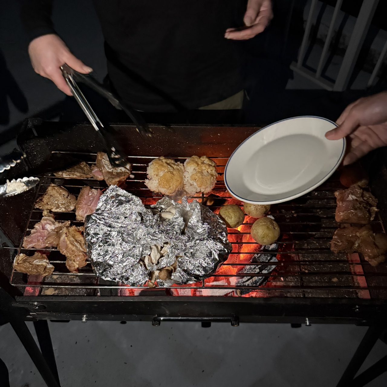 奄美大島最後の夜では、世話人の方々とBBQをしました。8日目はメンバーの帰る時間が違うため、全員で過ごす最後の時間となりました。美味しいお肉などをみんなで味わいました。ご飯を食べ終わった後に世話人の方が三味線と島の歌を歌って頂けました。心に染み渡る歌で必ずいつか戻ってきたいと思いました。