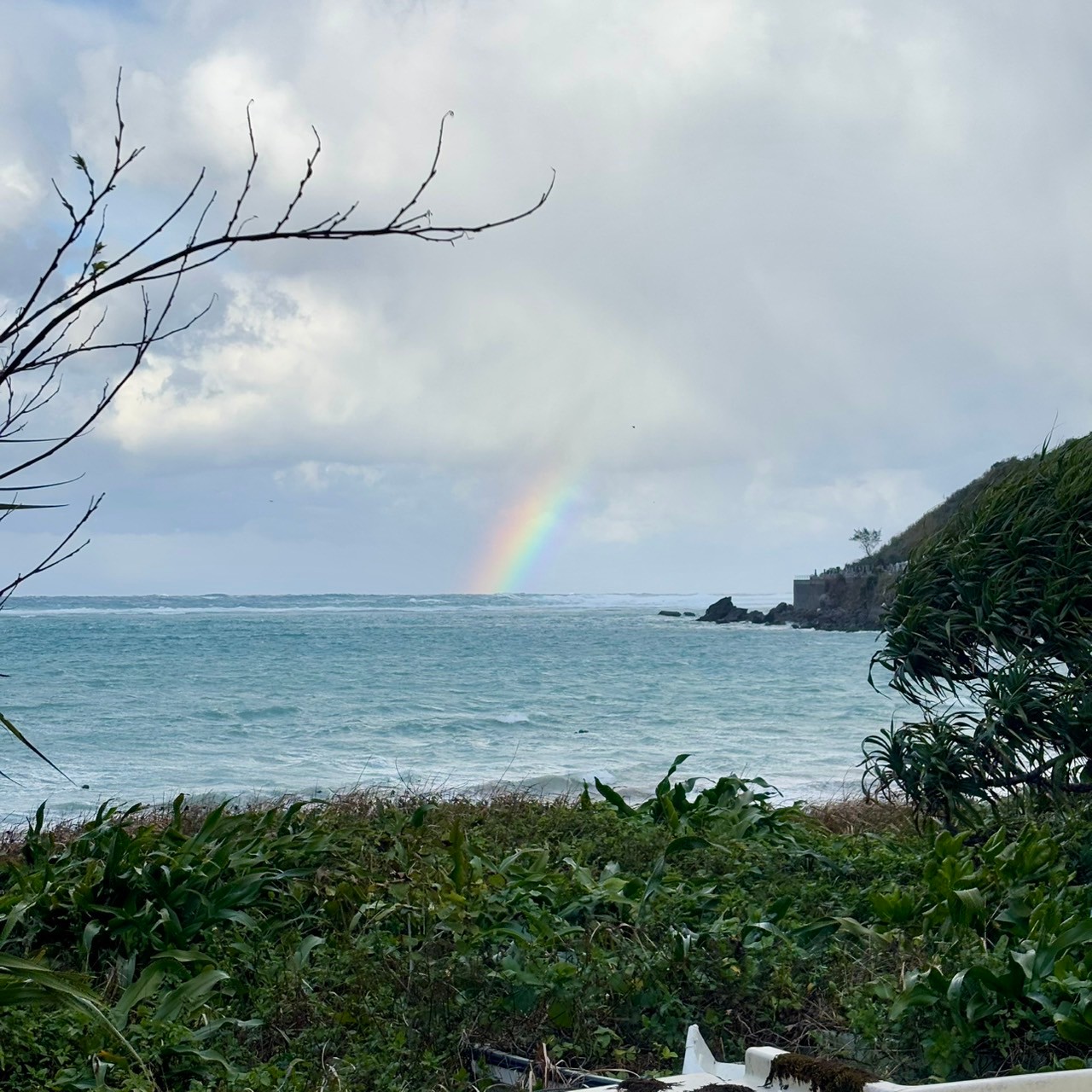 一瞬だけでしたが海の上にかかる虹をみることができてみんなで感動しました!