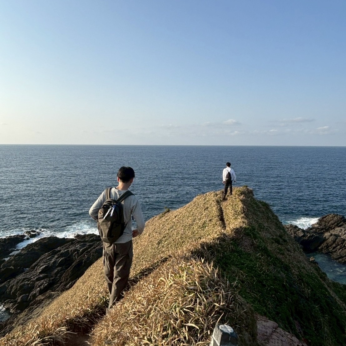 午後はOFFを頂き、1日目にお借りしたeバイクを使用して奄美大島を観光しました。昼ご飯は地元の方におすすめしていただいた定食屋に行き、奄美大島の海の幸を食べました。味はもちろん美味しかったですが、定食の値段の安さに全員が驚きました。美味しい昼ご飯を食べた後は宮古島に向かいました。片道12kmのeバイクと1.5kmの徒歩を超えた先に待っていたものは、今までの疲れを吹き飛ばすほどの絶景でした。
