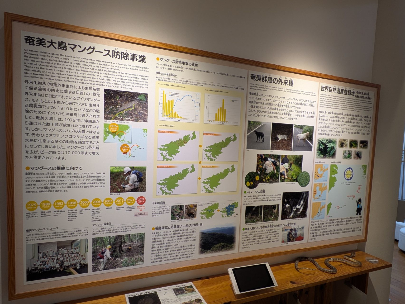 午前。雨が降りしきる中、向かったのは奄美野生生物保護センター。環境省管轄のこの施設でこの日、外来種に関する簡単な講義を受けた。様々な動植物が人間の手によって持ち込まれ、在来種の環境を脅かしており、奄美大島も例外ではない。植物ではツルヒヨドリ、動物ではマングース(2024年に根絶宣言)やノネコなど、何十種類もの生物が確認されているが、それでもここは “まだマシ” とのこと。講義の最後には、こんな言葉があった。