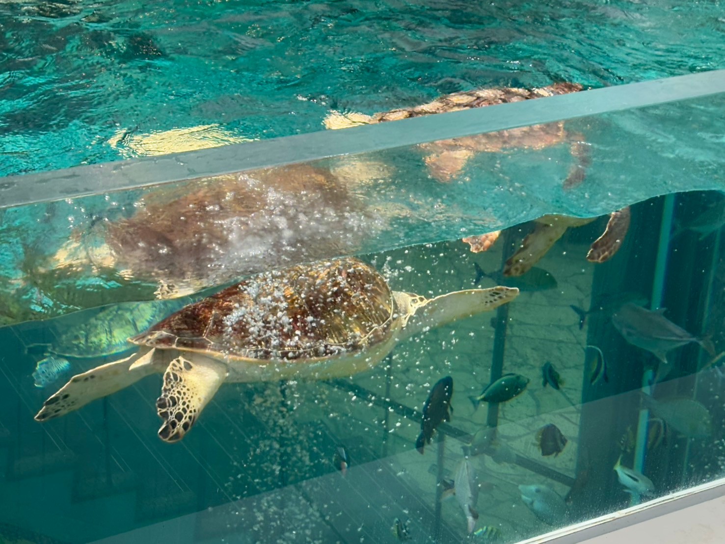 景色の綺麗な海岸や、水族館でウミガメに餌やりをしたり、
