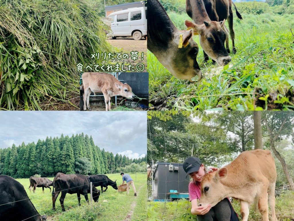 いざ牛たちを目の前にしてみると、想像よりも大きかったです。正直最初は少しこわさもありましたが、一日が終わる頃にはすっかり慣れて、触らせてくれそうな牛には、自分から触りにいけるようになっていました。(牛の舌ってとてもざらざらしているってしっていましたか?まるでスクラブのよう!笑)