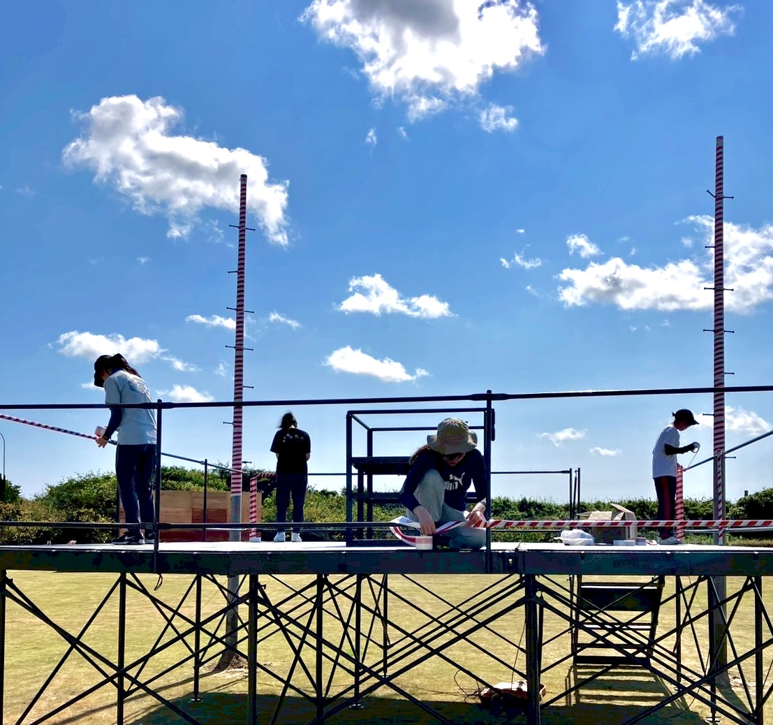 今日は、8/30〜8/31に開催される「白子げんき夏祭り」の準備に参加しました。やぐらに紅白のテープをまいたり、提灯をつるしたりしました。