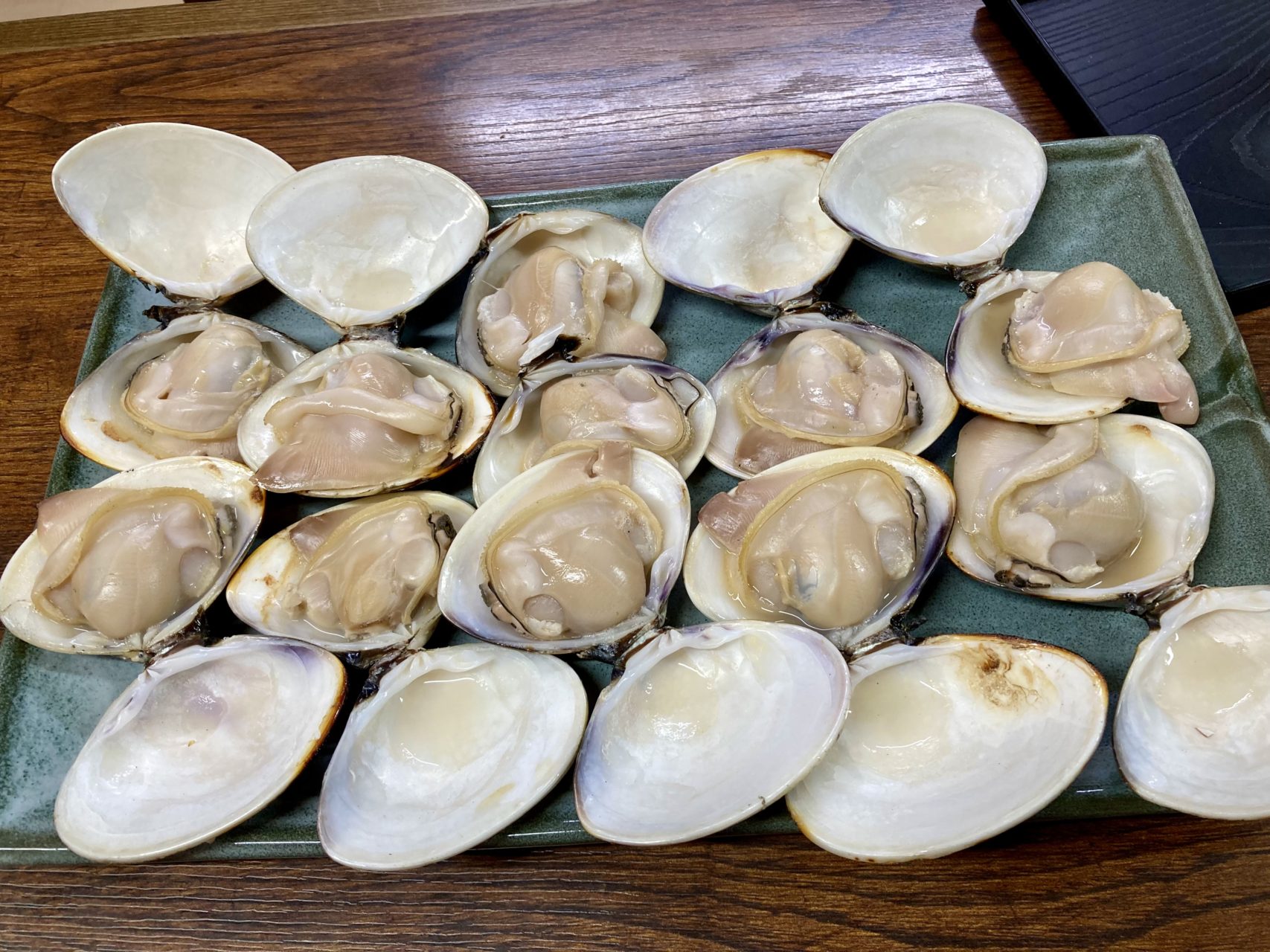 作業がひと段落した後は、温泉に入りました。一日中外にいたので、暑い中での作業は大変でしたが、温泉に入って疲れた体が癒されました。そして夜ご飯は、はまぐりが食べられるお店に連れて行っていただきました。旨みが詰まったはまぐりは、とても美味しかったです。