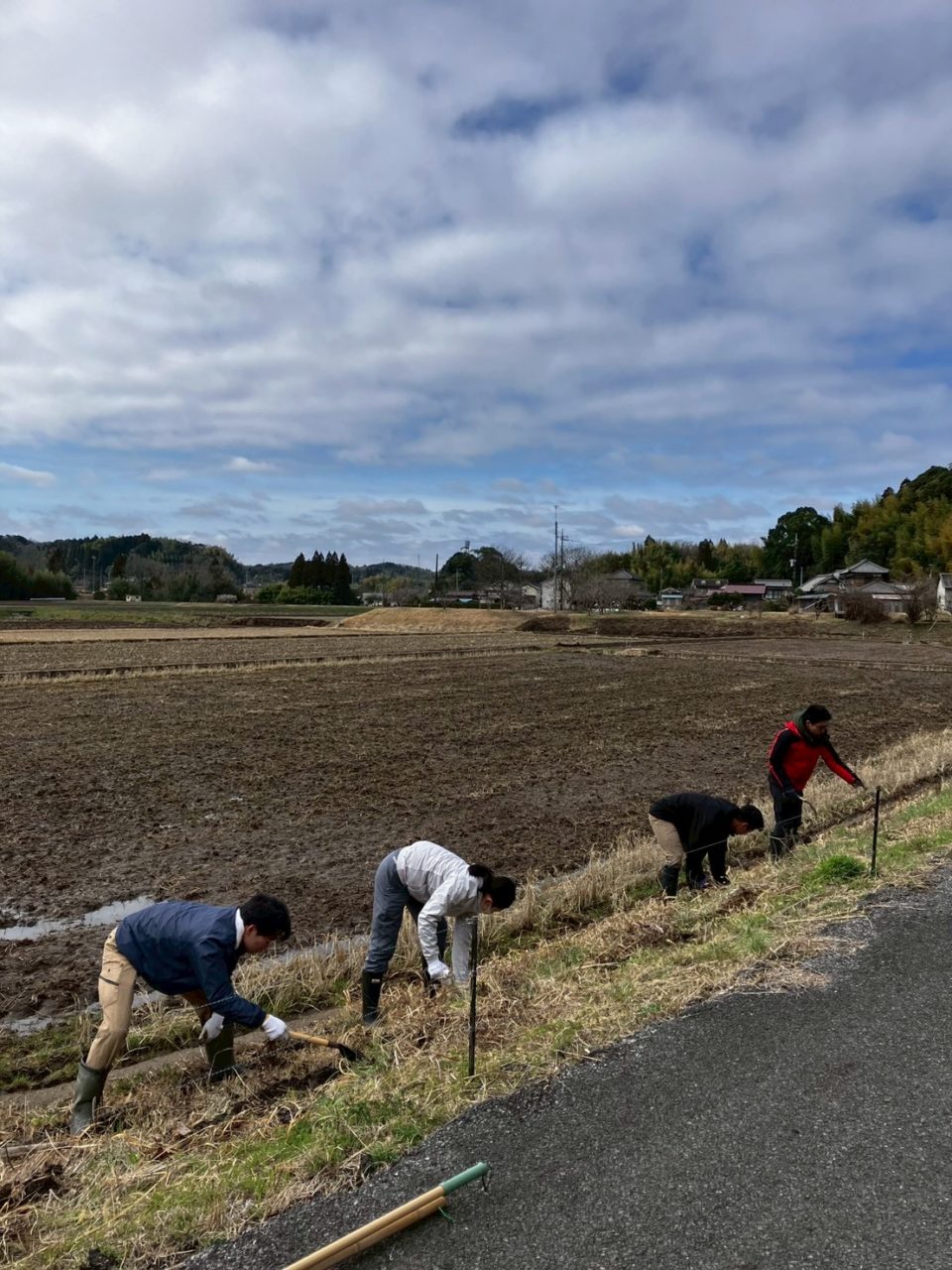 午前中は、田んぼの水路の手入れを手伝わせていただきました。中腰での作業が多く、自分が思っていた何倍も体力を使う作業だということが分かりました。