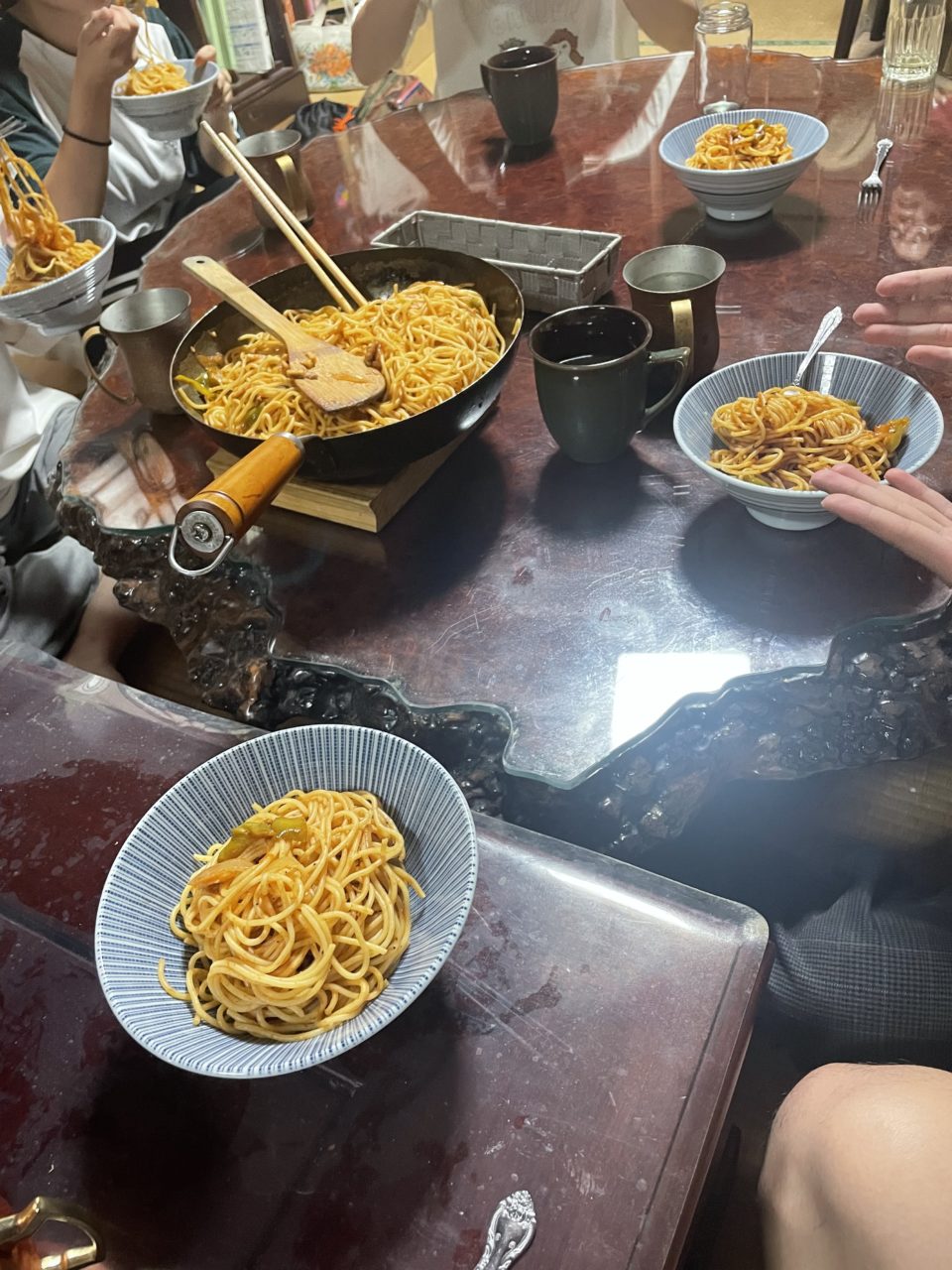 夕食はナポリタンをソースから作りました!1日活動した体に元気が戻りました!