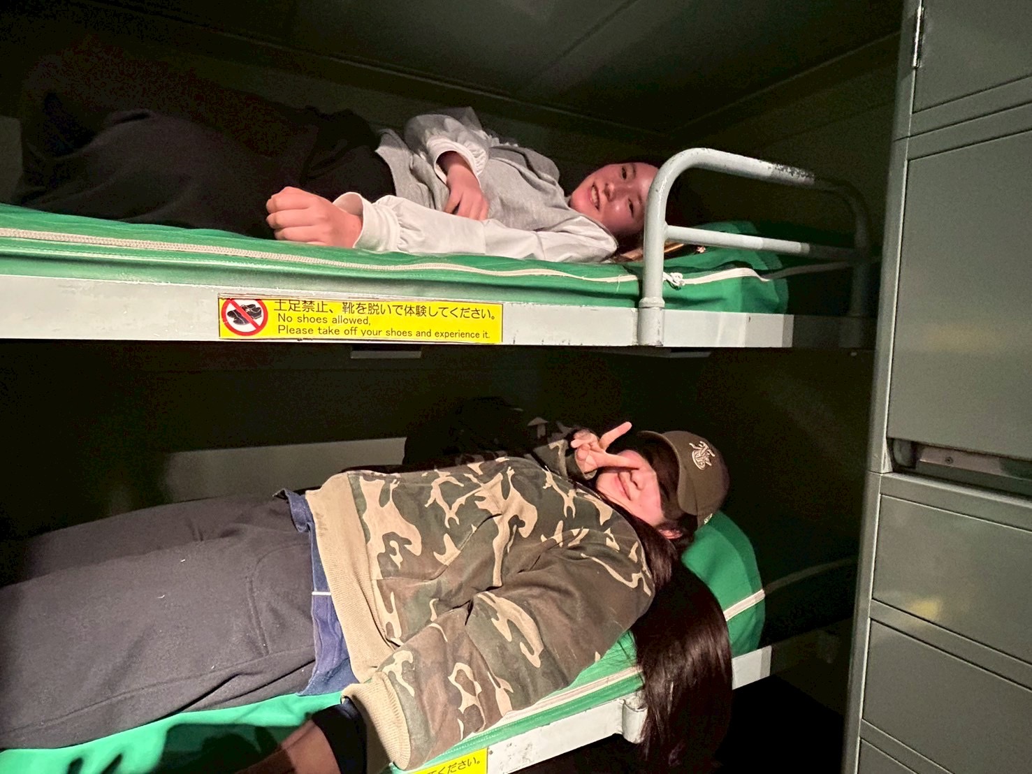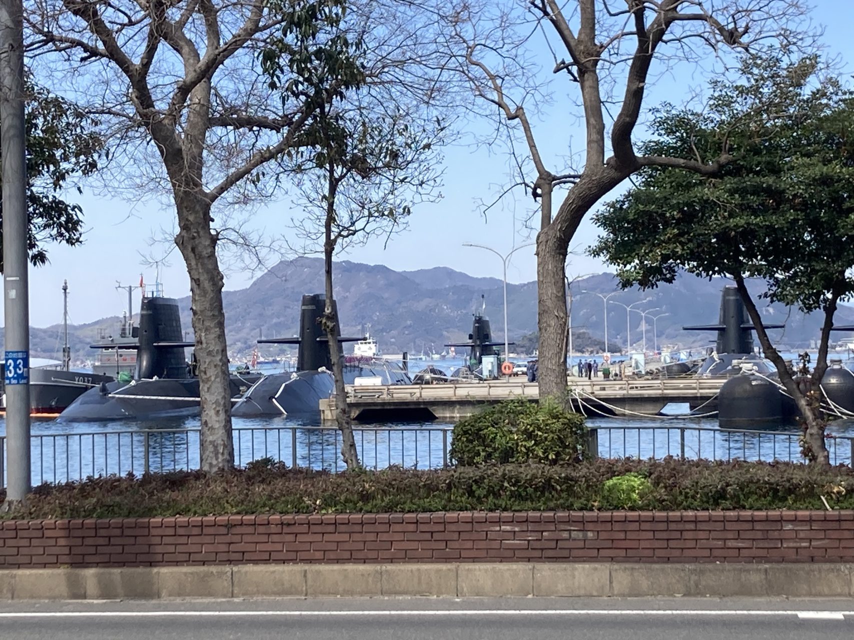 その後きゃんでぃさんと参加者のうちの4人と一緒に呉に行きました。呉海上自衛隊の潜水艦がたくさんありとてもワクワクしました。なんと古い潜水艦の内部に実際に入れる鉄のくじらという展示館があり、見学しました。外から見たら大きいのに中はとても狭くて窮屈だったのでその中で何ヶ月も生活する自衛官の人を心から尊敬しました。