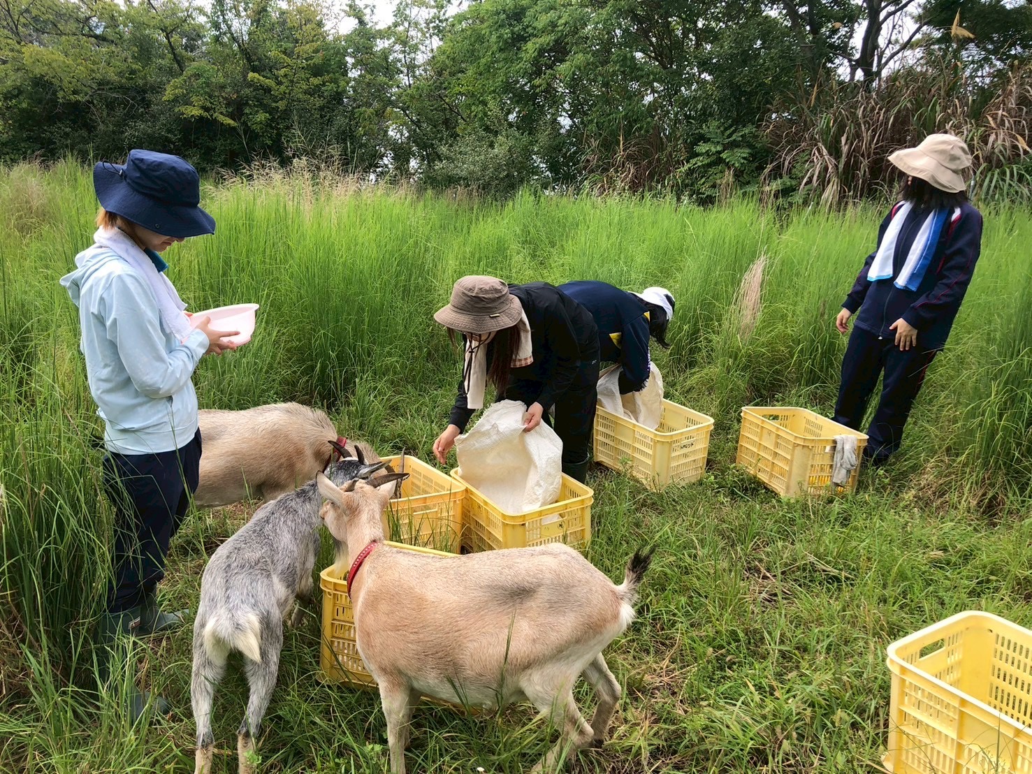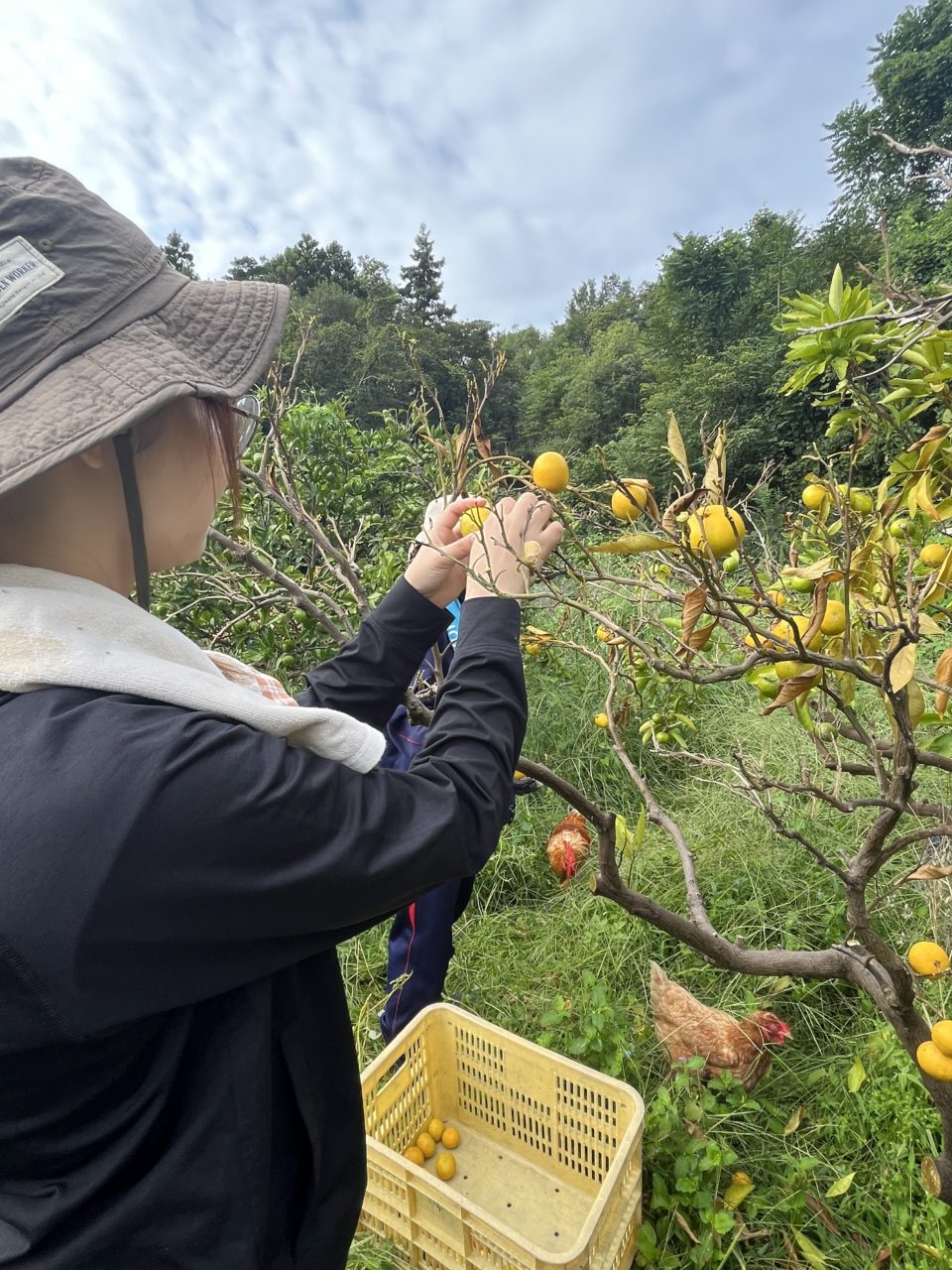 朝の活動は熟れているみかんをとり、ヤギに餌をあげました。4日目となれば慣れてくるもので、スムーズに餌をあげることができました。最初のどうすればいいのか戸惑っていたころが嘘みたいに感じます。今まで交流を通していろいろな方から教わった何度も挑戦、経験することの大切さを今回改めて実感されられました。