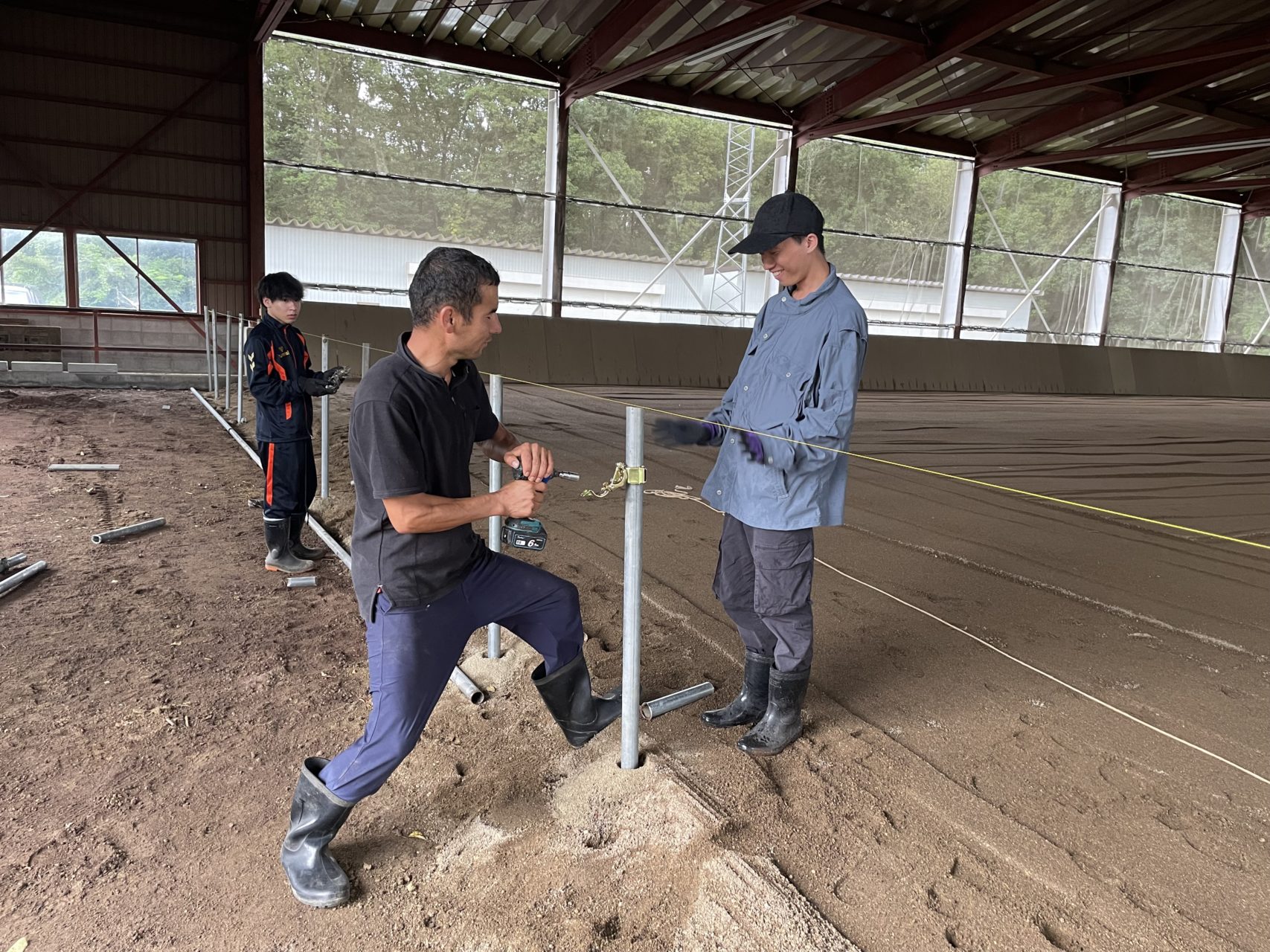 午後はウズベキスタン人のスタッフと一緒に覆馬場の柵を造りました。柵が真っ直ぐにならなかったり、ビスがうまくポールに嵌まらなかったりと順調にはいきませんでしたが、充実した時間を過ごすことができました。また、ウズベキスタン人のスタッフと更に仲良くなることもできました。残り少ない時間ですが、より親交を深められたらいいなと思います。