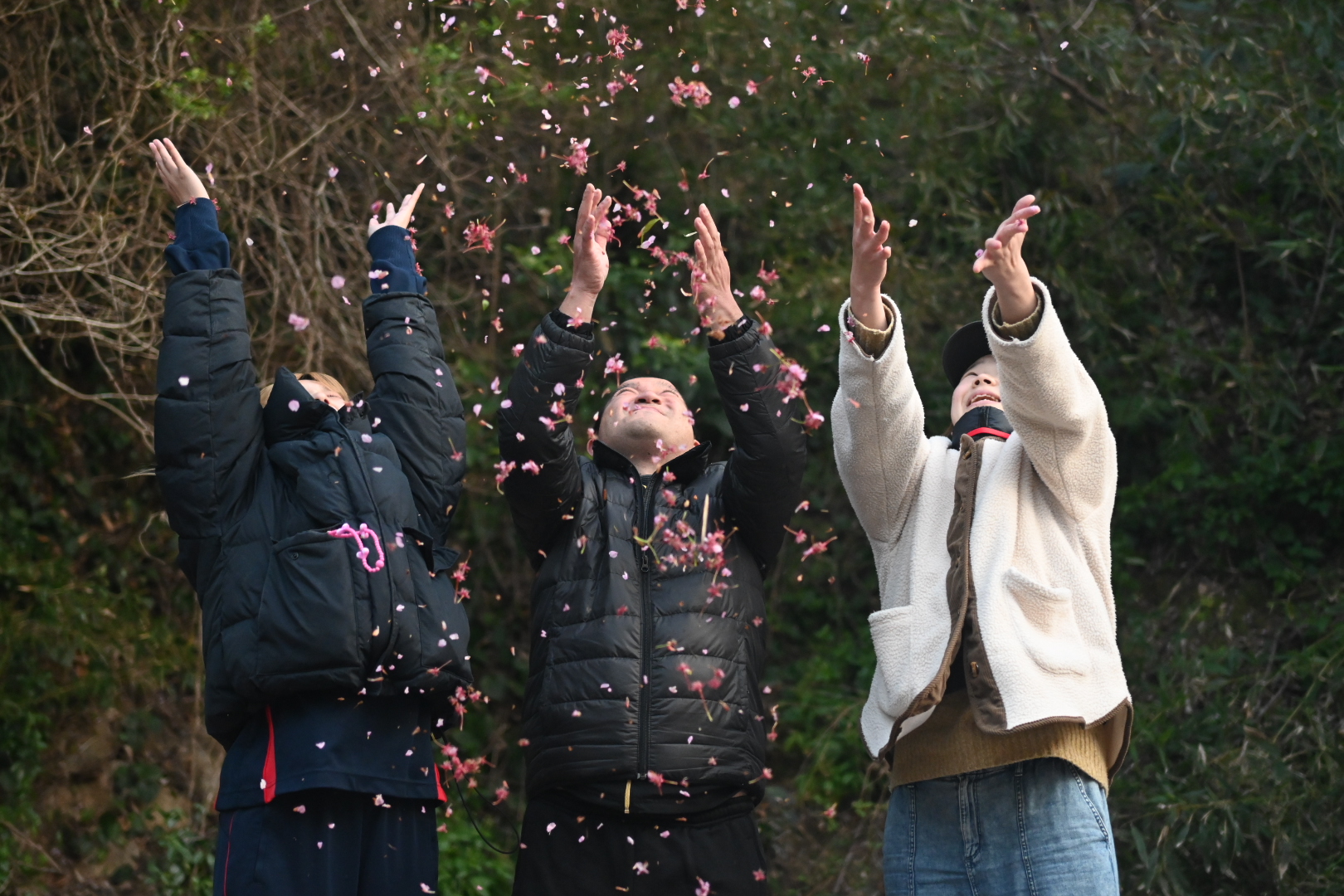 山を少し登っていったところに河津桜がまだ少し残っていて、葉桜になりかかっているところも綺麗でした。