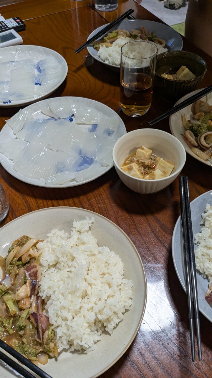 夜ご飯には島の方々からいただいた食材を使いました。本当にありがたいです。感謝を込めて、しっかり食べきりたいと思います!