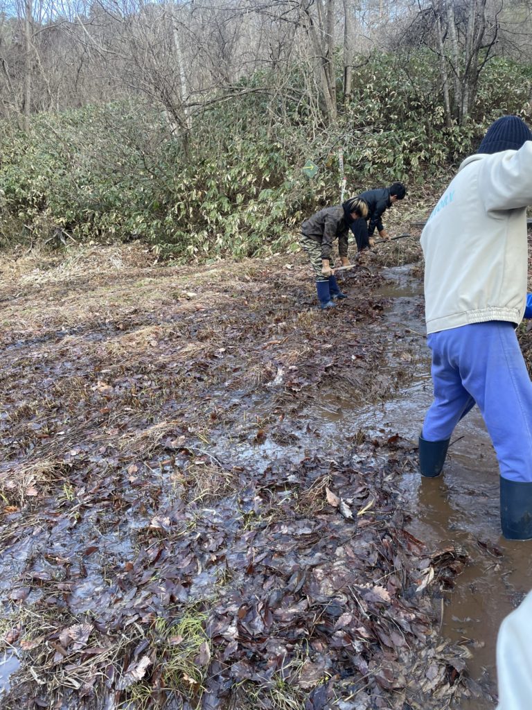今日も昨日に引き続き午前中はホタルの住む沢の環境整備から始まりました。今回、整備させていただいたところはちょうどヘイケボタルの幼虫が生息しているそうです。夏にホタルの光が多く見られることができるよう願っています!