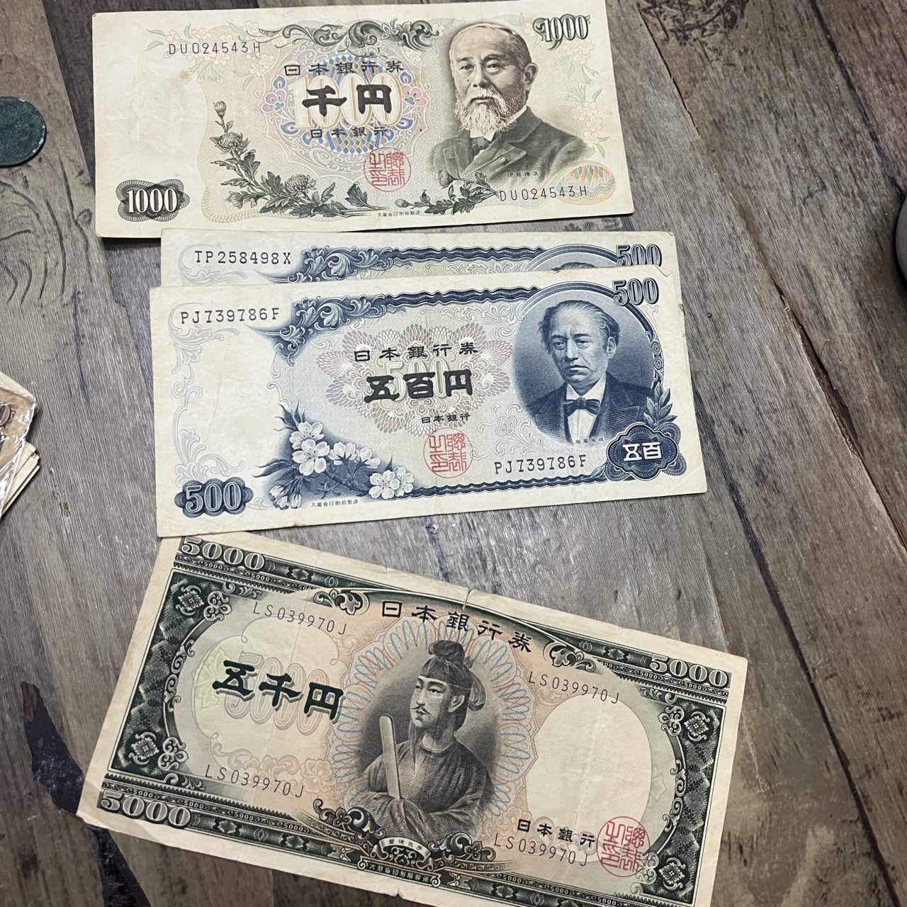 100円札や500円札、記念硬貨など様々出てきて、特に驚いたのは錆びた銭と5000円玉です。