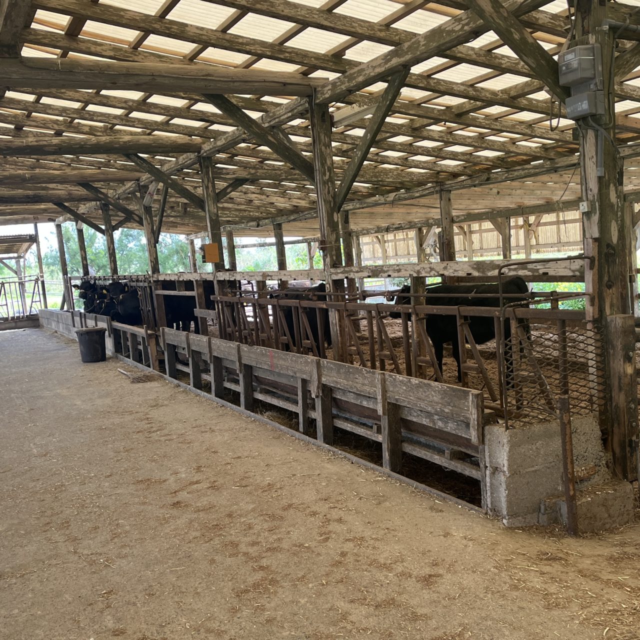 子牛を赤ちゃんからせりで売れる状態まで育てるのがこの牛舎の特徴で、ほとんどが妊娠前・妊娠中の雌牛、そして2割ほど子牛がいます。