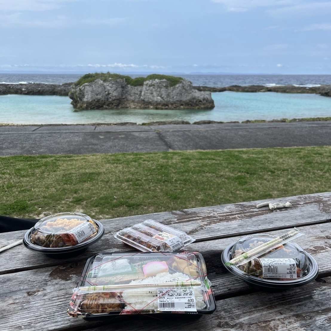 お昼休憩はスギラビーチ🏖で絶景の海を見ながらお弁当を食べました!!!快晴の空の下で気持ち良い海風とともにみんなウトウトしながら幸せな時間を過ごしました💖