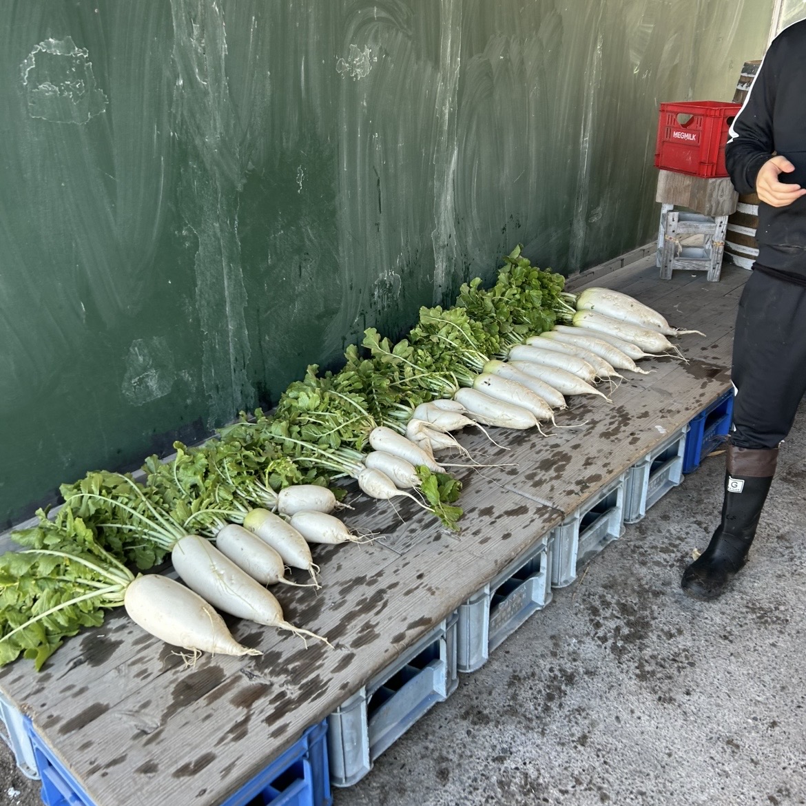 昼からは畑に移動して作業を行いました。まずは、うわっていた大根を一つずつ抜いていきました。どれも太く立派に育っており、大地のパワーを感じました。