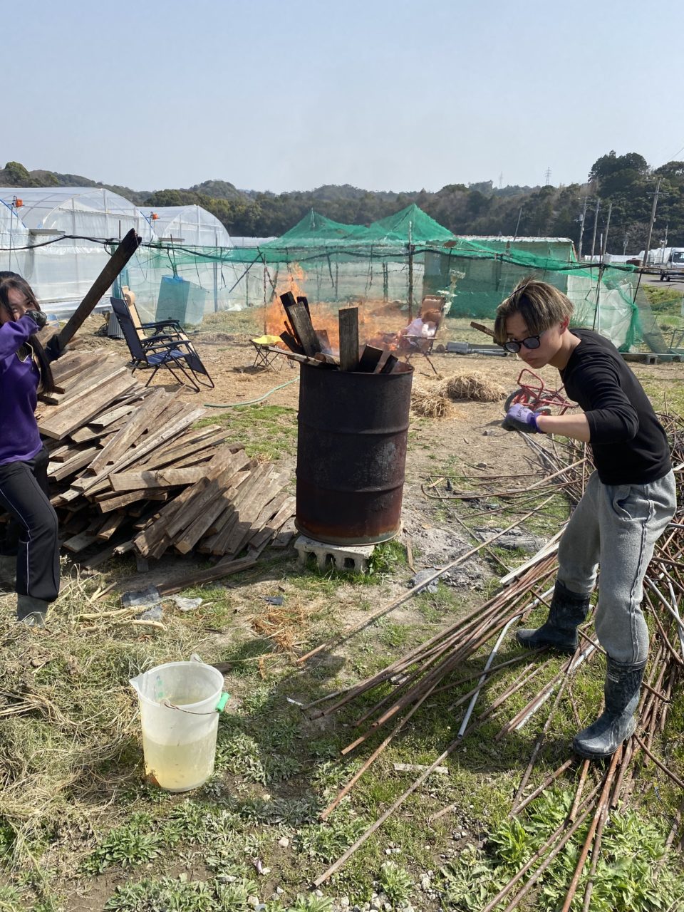 本日もきゅうり農家の阿部さんのファームにお世話になりました!先日小さく切った廃材を焼却しました🔥燃え移らないように細心の注意を払いました。