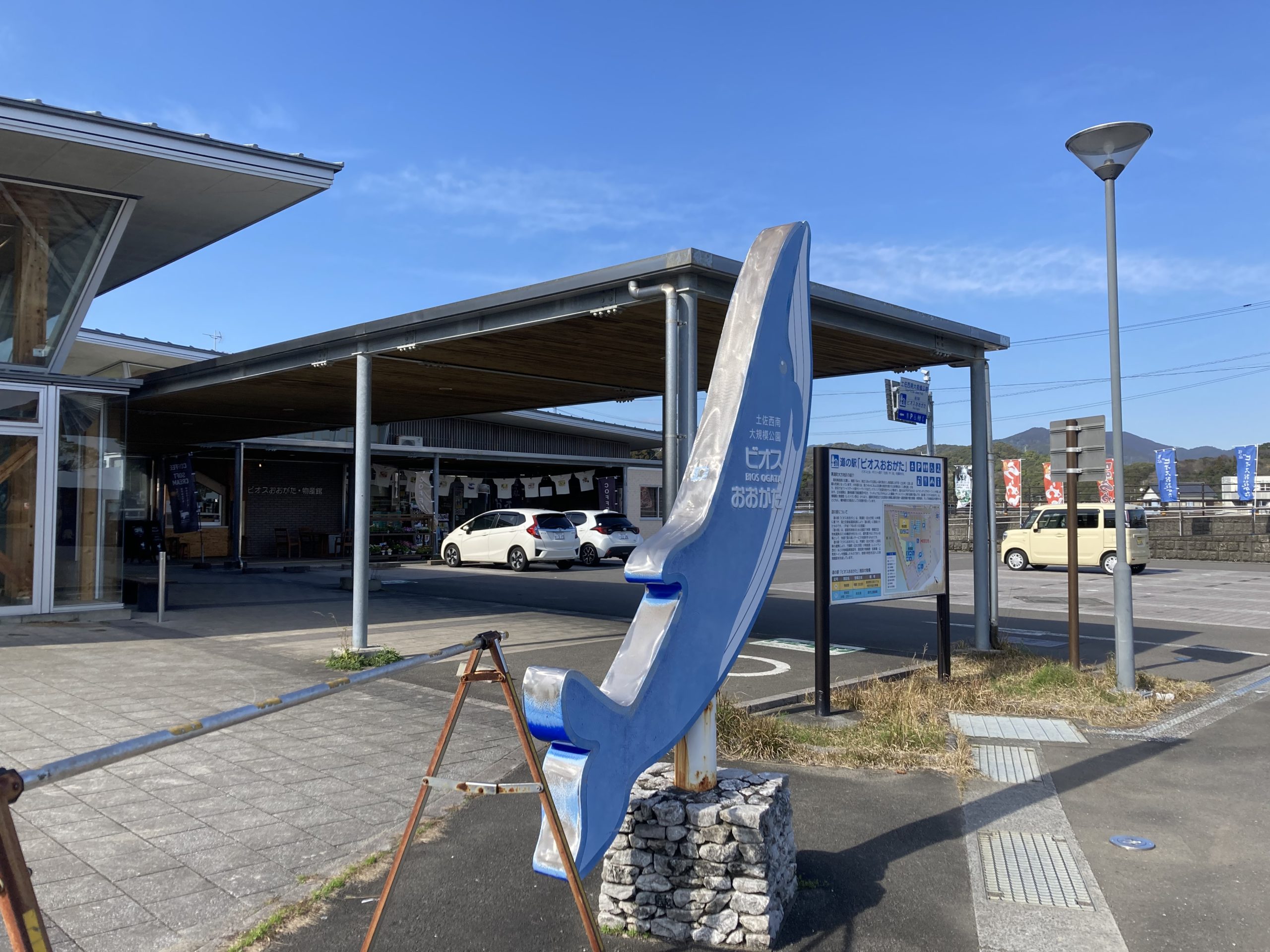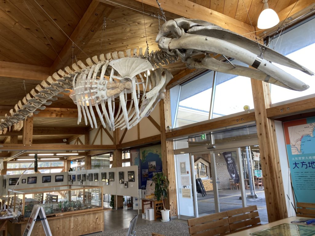 午後は、自由時間をいただいたので、自転車で黒潮町を探索しました。はじめに、道の駅ビオスおおがたに行きました。地元の名産品はもちろん、観光情報やくじらの骨も展示されており、とても面白かったです!