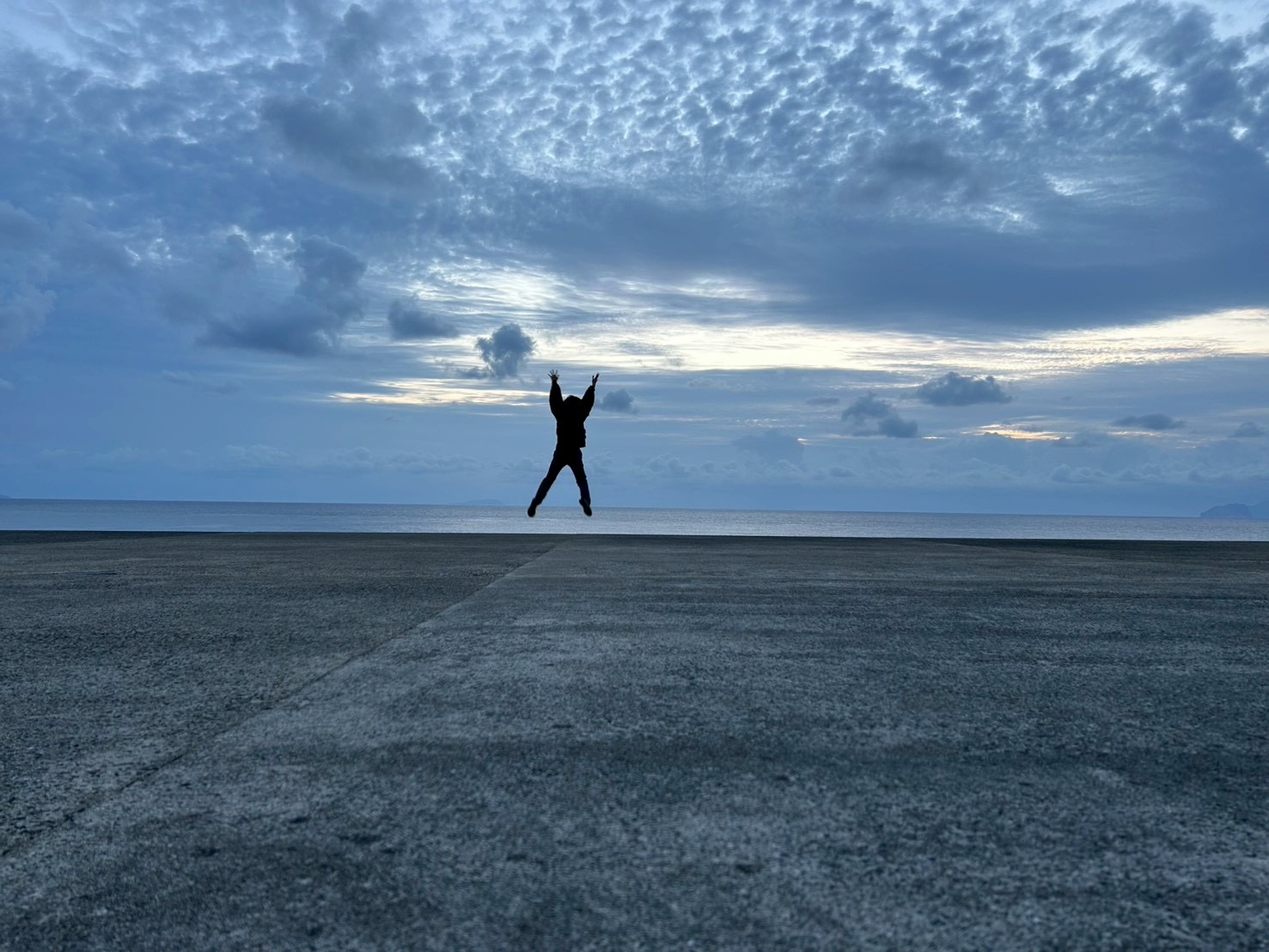 農作業が終わった後、旧港に夕陽を見に行きました。かつてフェリーが止まった港で、とにかく広い場所です。距離感がバグって、怖いような面白いような不思議な気分でした。生憎水平線に沈む夕陽は見られませんでしたが、いい場所でした。