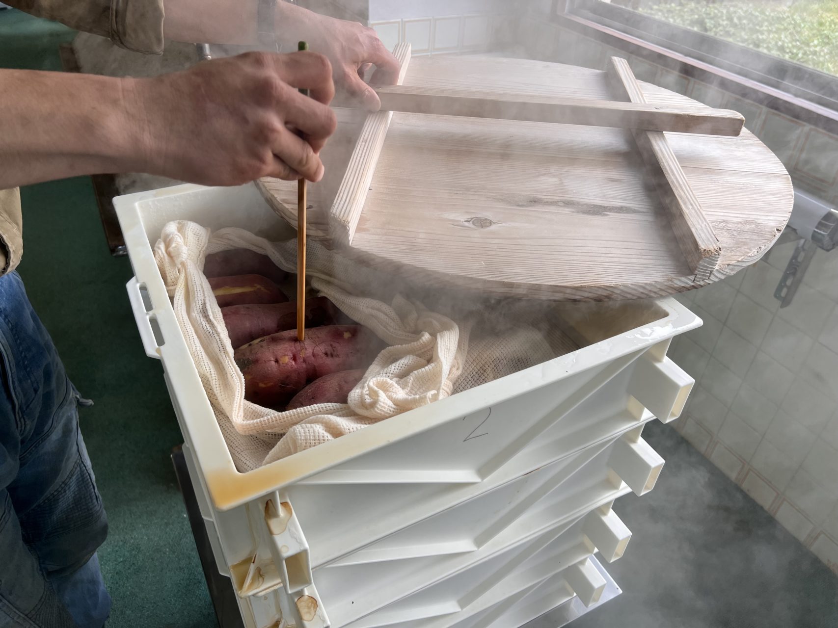 その後フェリーの到着時間に港に行ったり、さつまいもの加工を行ったりしました。島のさつまいもにはナントカゾウムシという、島固有の虫がいるそうです。それが島外に出て本土の生態系に広がらないように、島から生のさつまいもを出荷することはできません。その代わり、蒸したり焼き芋にしたりして、加工品にすることで出荷できるそうです。蒸気でじっくり40分蒸したさつまいもは、とても甘くて天然のスイートポテトみたいでした。一緒に芋を蒸して干し芋作りの準備をした漁師さんが魚を分けて下さったので、夕ご飯は海鮮丼でした。めちゃめちゃ美味しかったです!ごちそうさまでした!