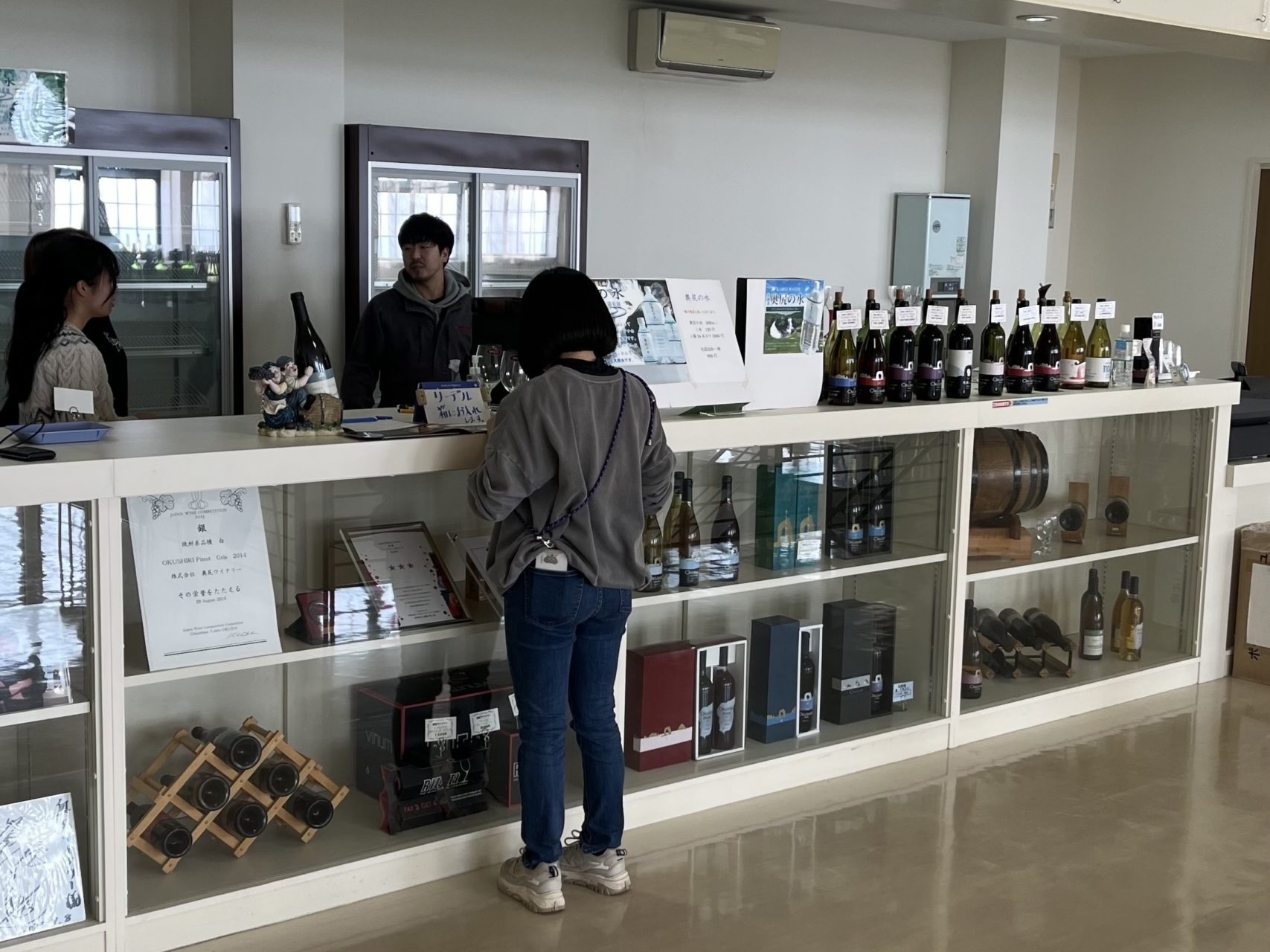 見学の後は、ワイナリーのショーケースの掃除と整理の手伝いをしました✨ワインが美しく見えるよう工夫し、並べました!