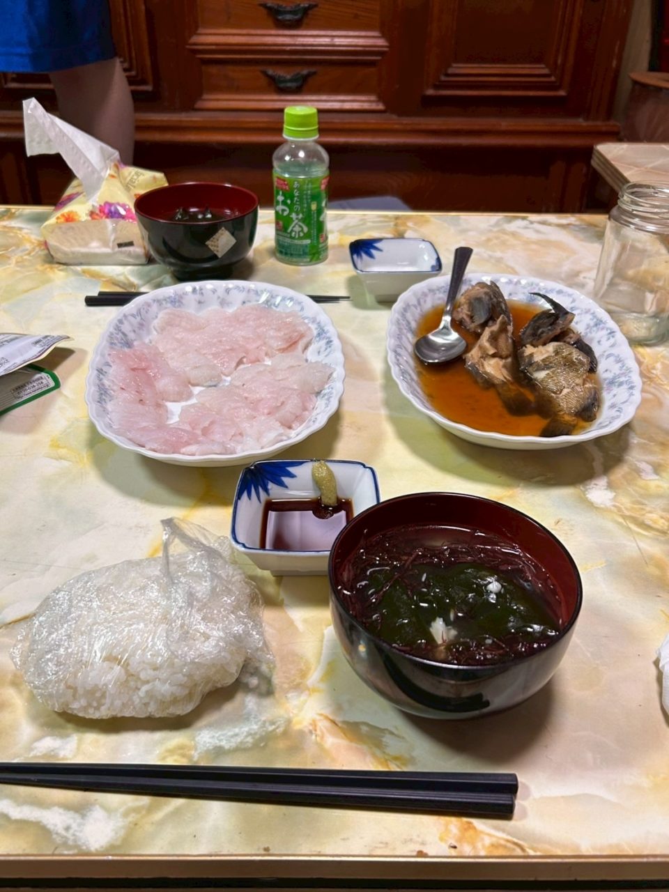 夜ご飯では釣った魚でお刺身と煮付け、そしてあら汁を作りました。初めて煮付けとあら汁を作ったため、少し大変でしたがメンバーと協力して楽しく、美味しいご飯を作ることが出来ました!