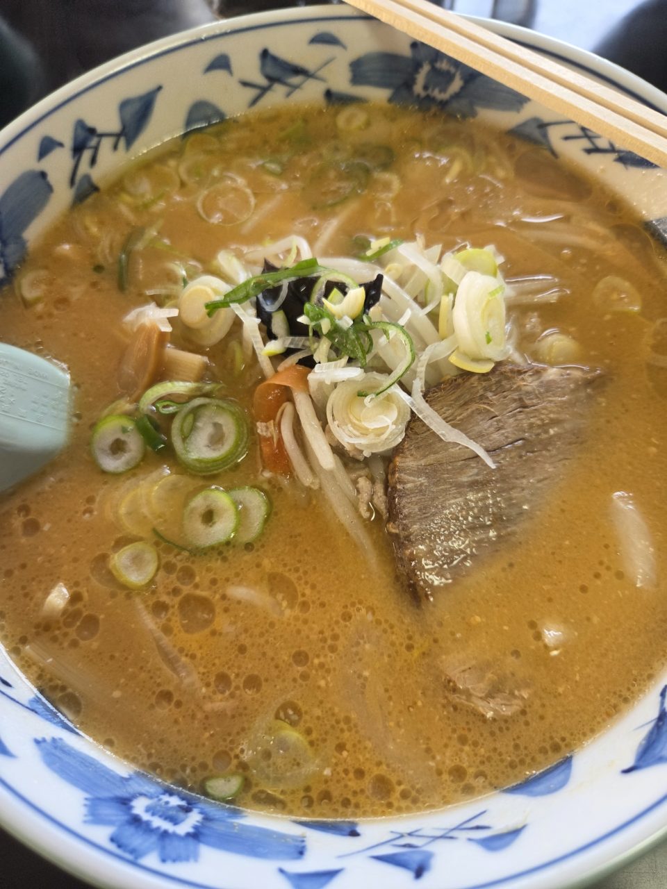 朝、早起きをしてフェリー組を見送った後、以前訪れた潮騒でお昼ごはんを食べました。味噌ラーメンが以前好評だったので今回食べてみたところ、にんにくの効いたスープの味付けやちぢれ麺がとても美味しかったです。