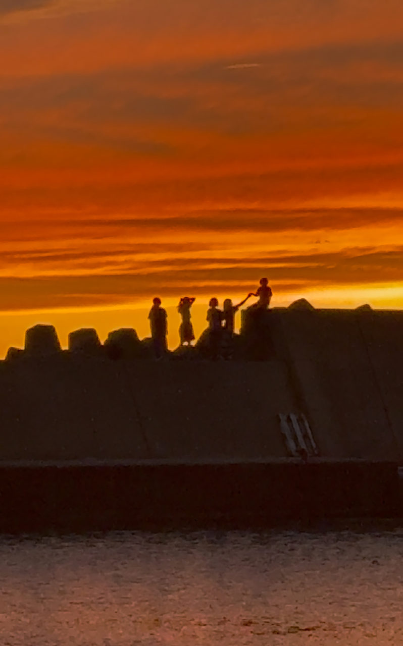 夕方にはいまこのときしか見ることのできない夕日を見るために、防波堤を目掛けてみんなで走りました。
