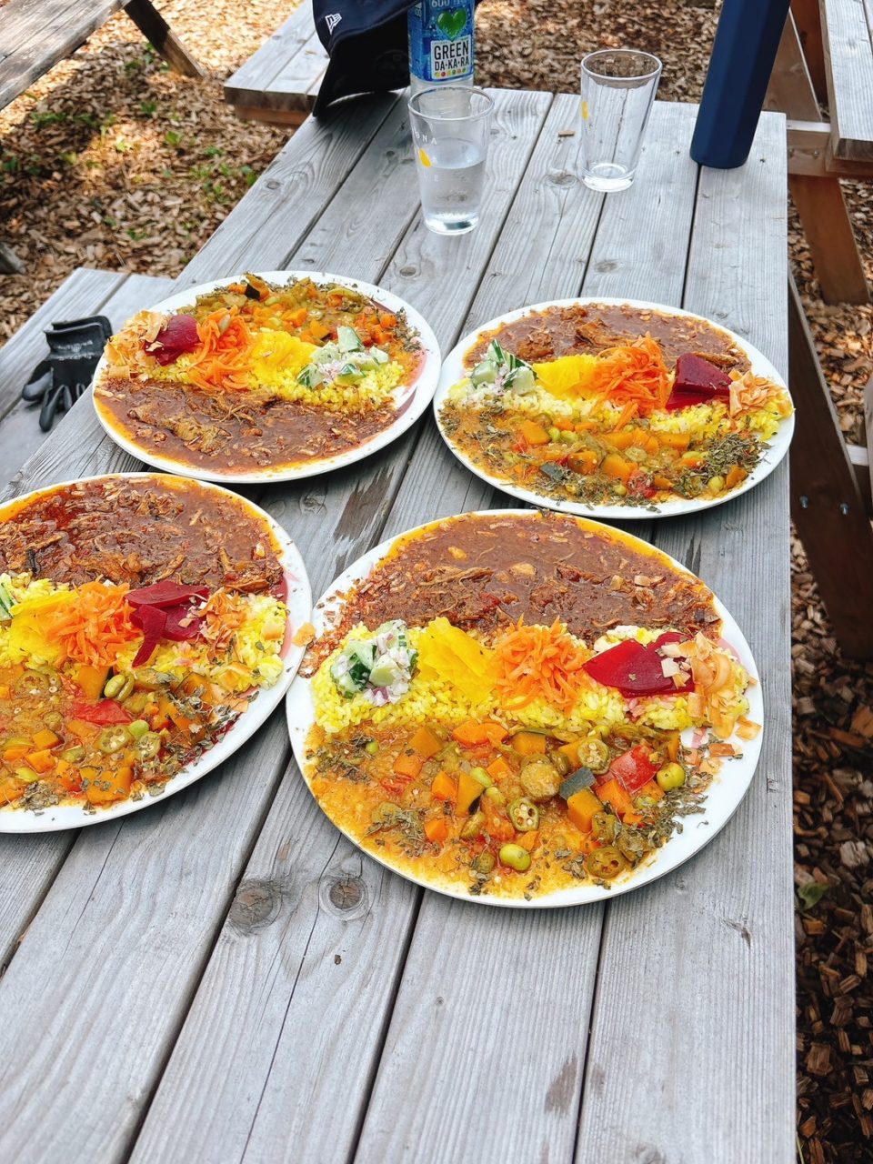 プレートに2色のカレーが乗っており、チキンカレーとタカナシコミュニティガーデンで作った野菜カレーは絶品でした!