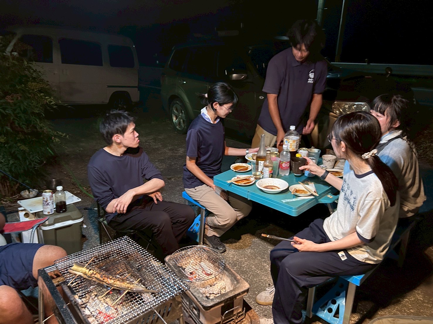 地元のお酒は飲みやすく、鹿のモモ肉は臭みもなくあっさり。釣り名人のけんちゃんさんが釣った天然ウナギもいただきました!身がふわふわで、網に入りきらないほど大きなものもあって感動。
