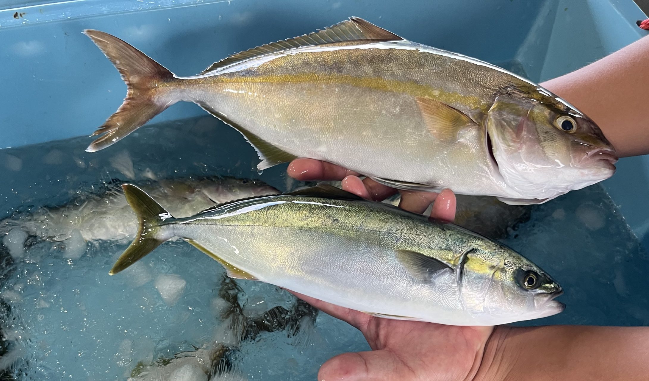 3枚目の写真は、カンパチ(上)とブリ(下)。