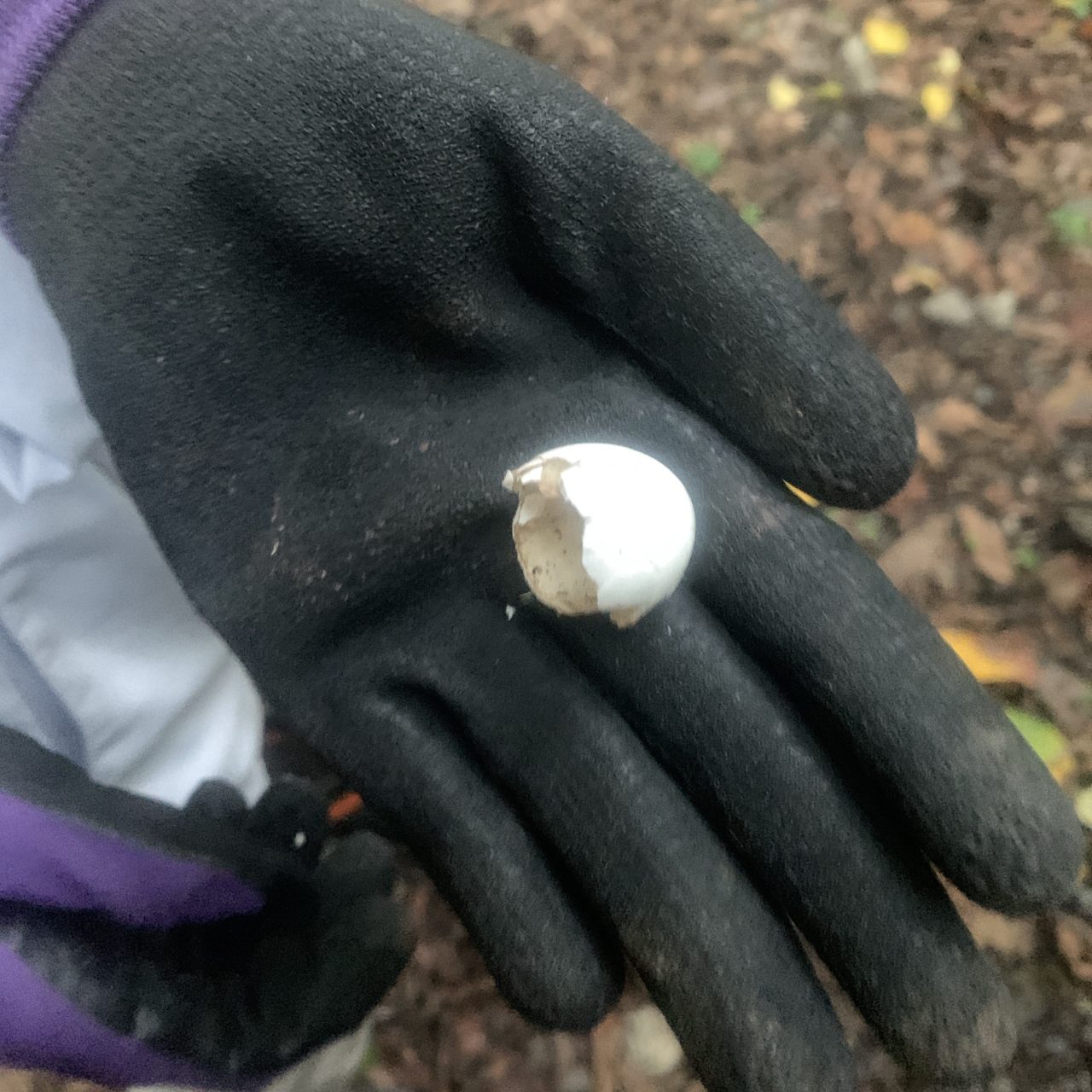 今日は5:00ごろから忍び猟をしました(1枚目)。雑木林の中を片道20分ほど歩きました!鹿を見つけることはできませんでしたが、謎の卵の殻を発見しました!(2枚目)探検みたいでとても楽しかったです!