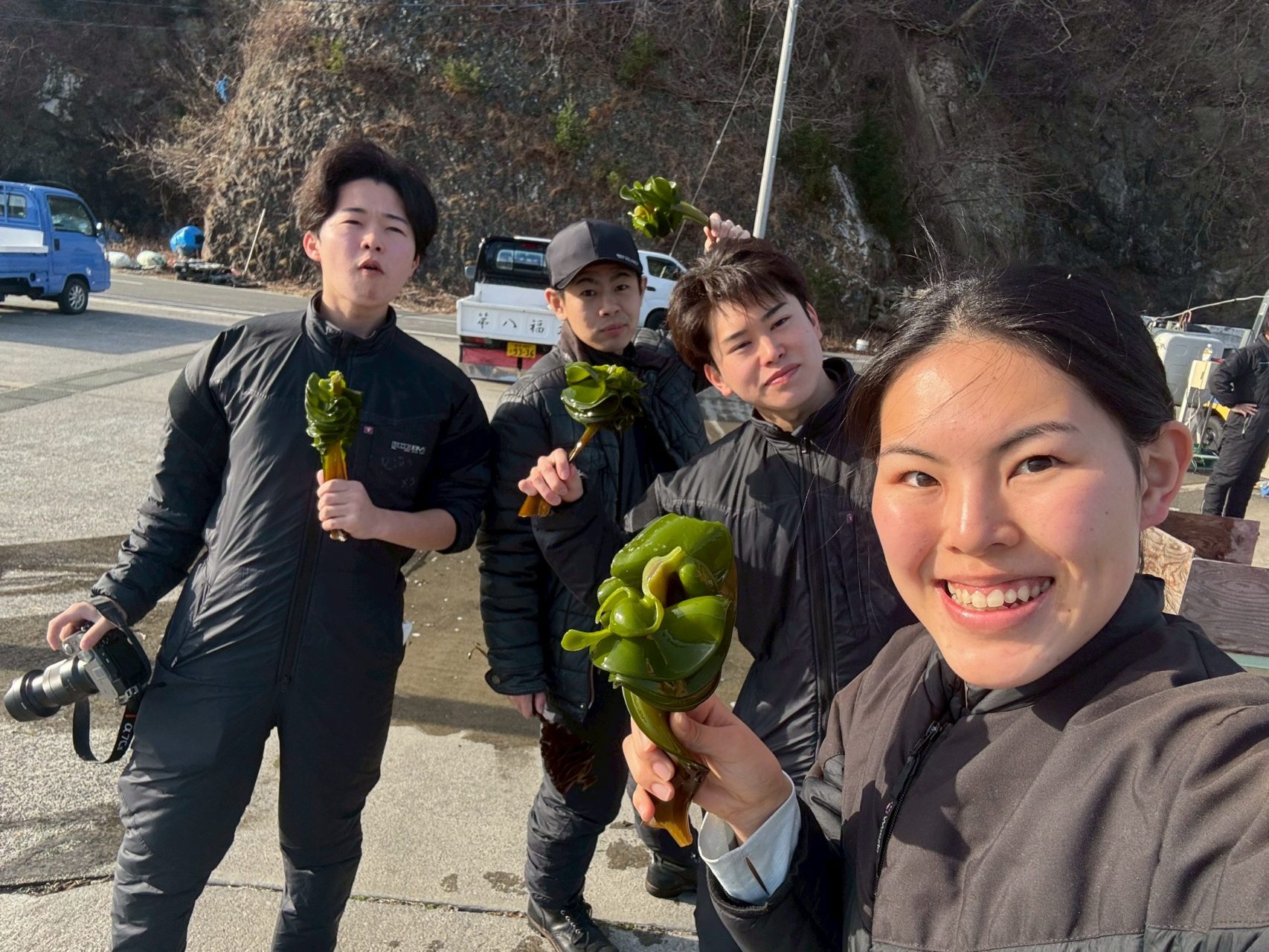 1日の初めは、わかめとめかぶの水揚げ作業の見学。