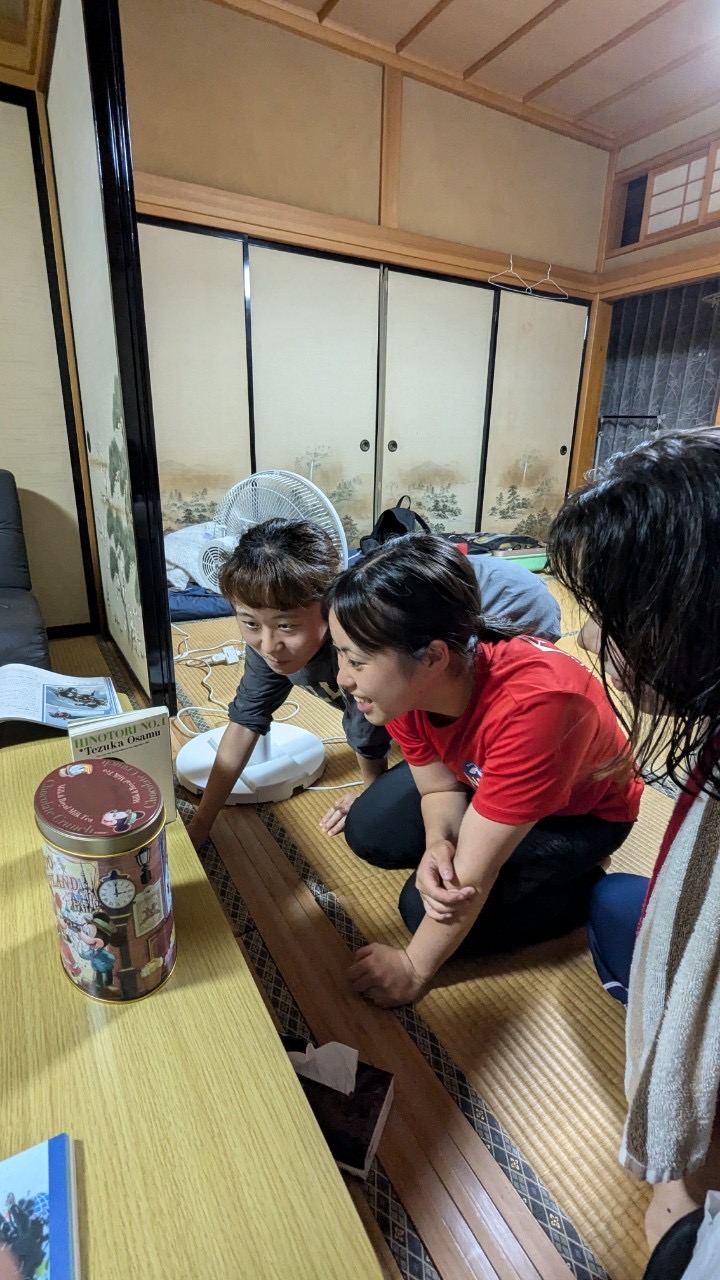 バトミントンのガットが切れたらみんな靴を脱いでサンダルバドミントンが始まったり、視力の悪さを競い合ったり、内容の難しいスキューバの教科書を悶々としながら読み進めたり、ご飯を作っていたらワンマンライブが始まったり…初日とは思えないほどリラックスできる環境ができているのではないでしょうか?(私だけか?)