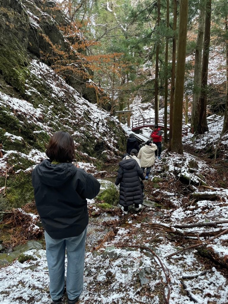 夕方には山を登って不動滝を見に行きました。空気が澄んでいて、とても落ち着く空間でした。