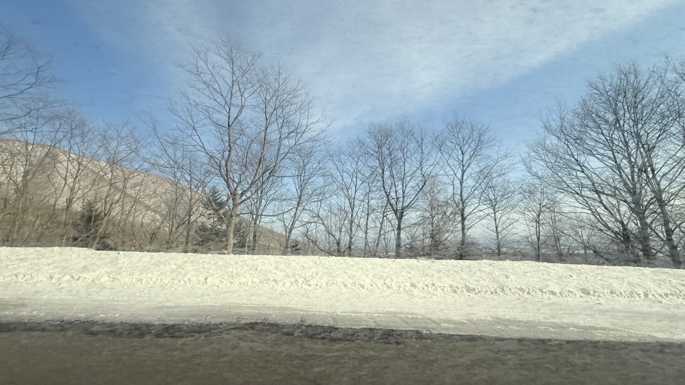 道中は雪雪雪!私の住んでいる地域には雪が滅多に降らないため、まっしろな雪景色にとてもわくわくしていました!