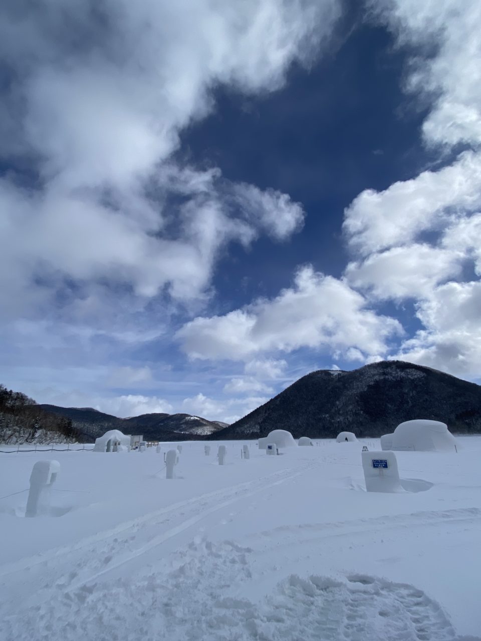 今日は前日に大雪が降ったので湖上のたくさんの雪を踏み固めました!雪で凍ってる湖ですが、その上に雪が積もったり、水が染み出してきたときは想像以上に注意が必要です!明日にはお客さんが入れるくらい固まってくれたらいいなぁ!