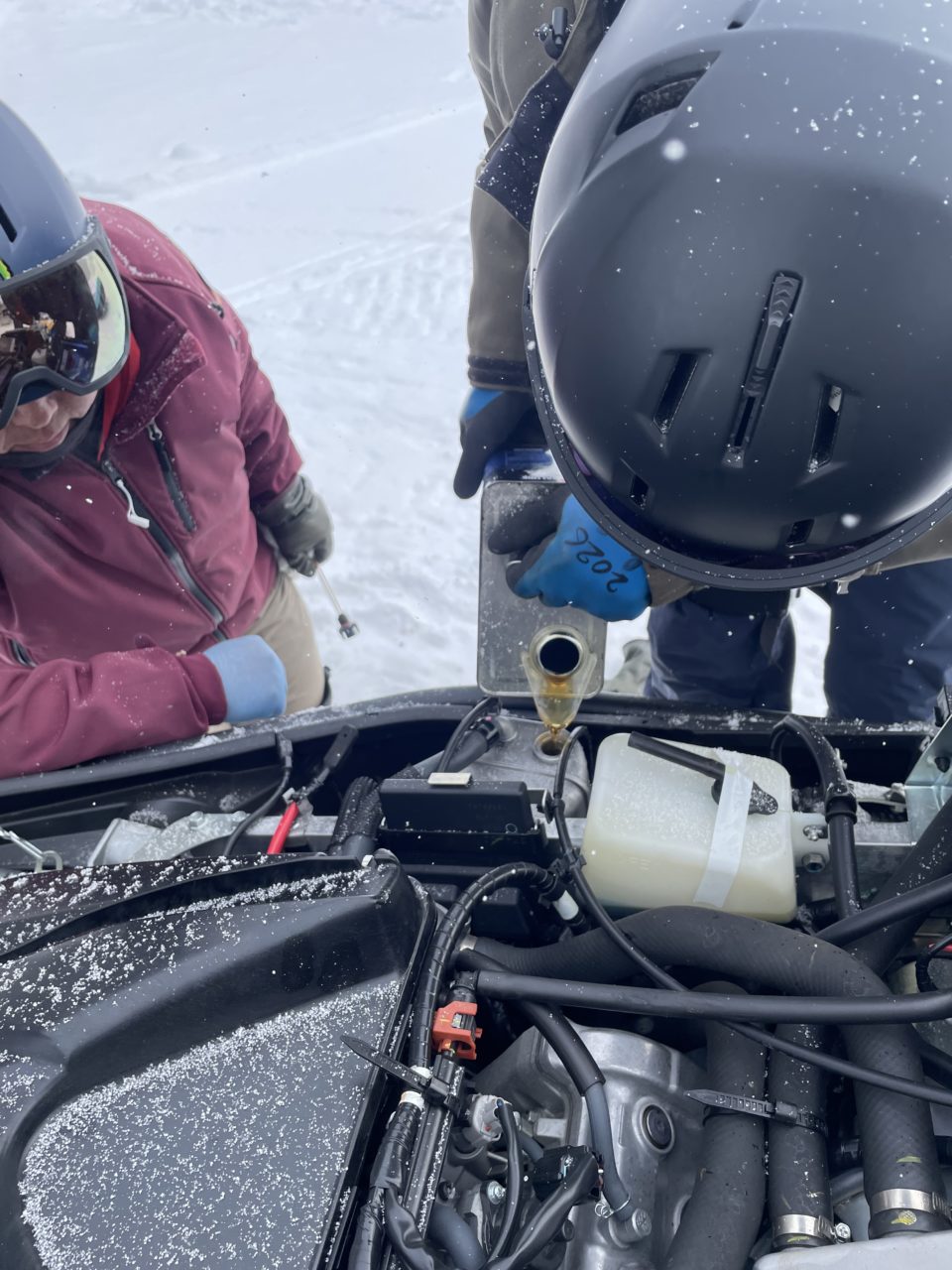 今日はスノーモービル担当でした!営業開始前にエンジンの凍結防止のための不凍液とオイルの補充をされていて、オイルを切らすと機械が故障してしまうため定期的な補充が欠かせないと仰っていました。