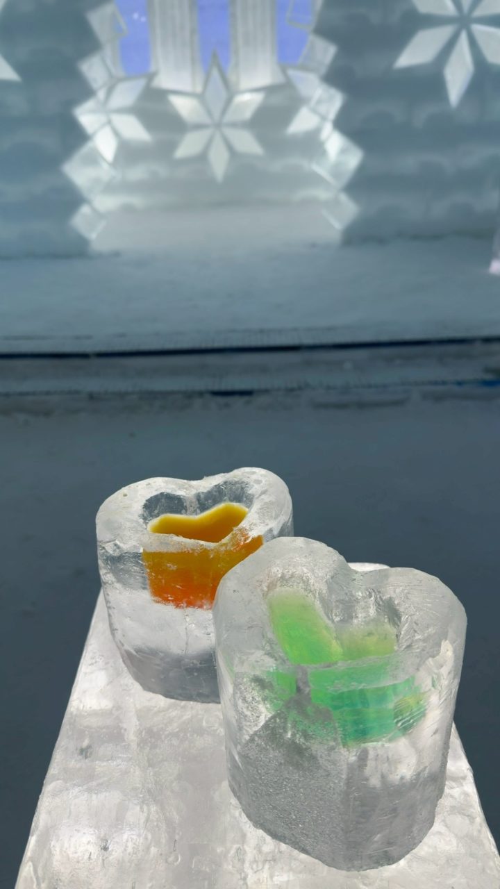 そして午後からはスノーシューハイクに参加させていただきました。人生で初めてスノーシューを履き、ガイドの方のお話を聞きながら雪の中を散策しました。普段の生活では出会えない景色や静けさに包まれて、本当に貴重で楽しい時間でした。その後は氷のグラス作りにも挑戦しました。割れないように慎重に削りながら形を整え、思い通りのグラスができてとても嬉しかったです!