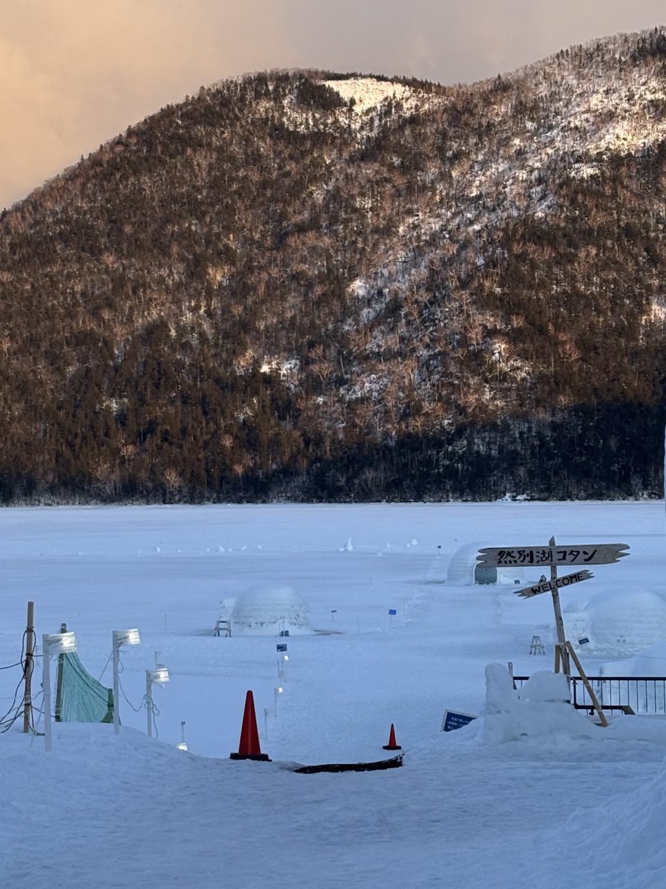私は入口業務を担当しました。最終日ということもあり、いつも以上に多くの人が然別湖コタンに遊びに来ているのを業務を通して感じました。また、湖上の建物が溶け始めているのを目の当たりにして本当今日が最終日なのだなと実感しました。