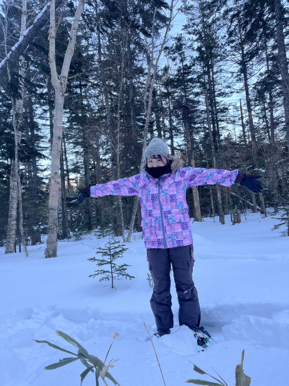 午前中はのんびりと過ごし、午後からスノーシューハイクに参加させていただきました。