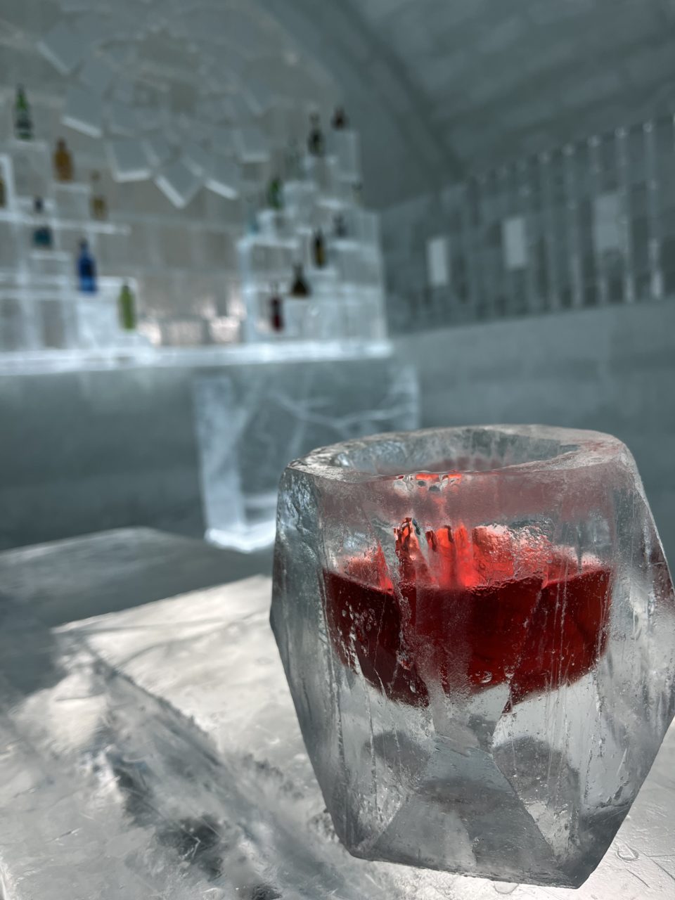 その後はアイスバーで氷のグラス作りに挑戦しました。無心で氷を削っていく作業は、新鮮でとても楽しかったです。自分で作ったグラスで、北海道特産ハスカップのサイダーをいただきました。細部まで凝って作られた美しいアイスバーで、お客様も写真を撮ったりお酒を嗜んだり、思い思いのリラックスタイムを過ごされていて、改めて素敵な場所だと感じました。