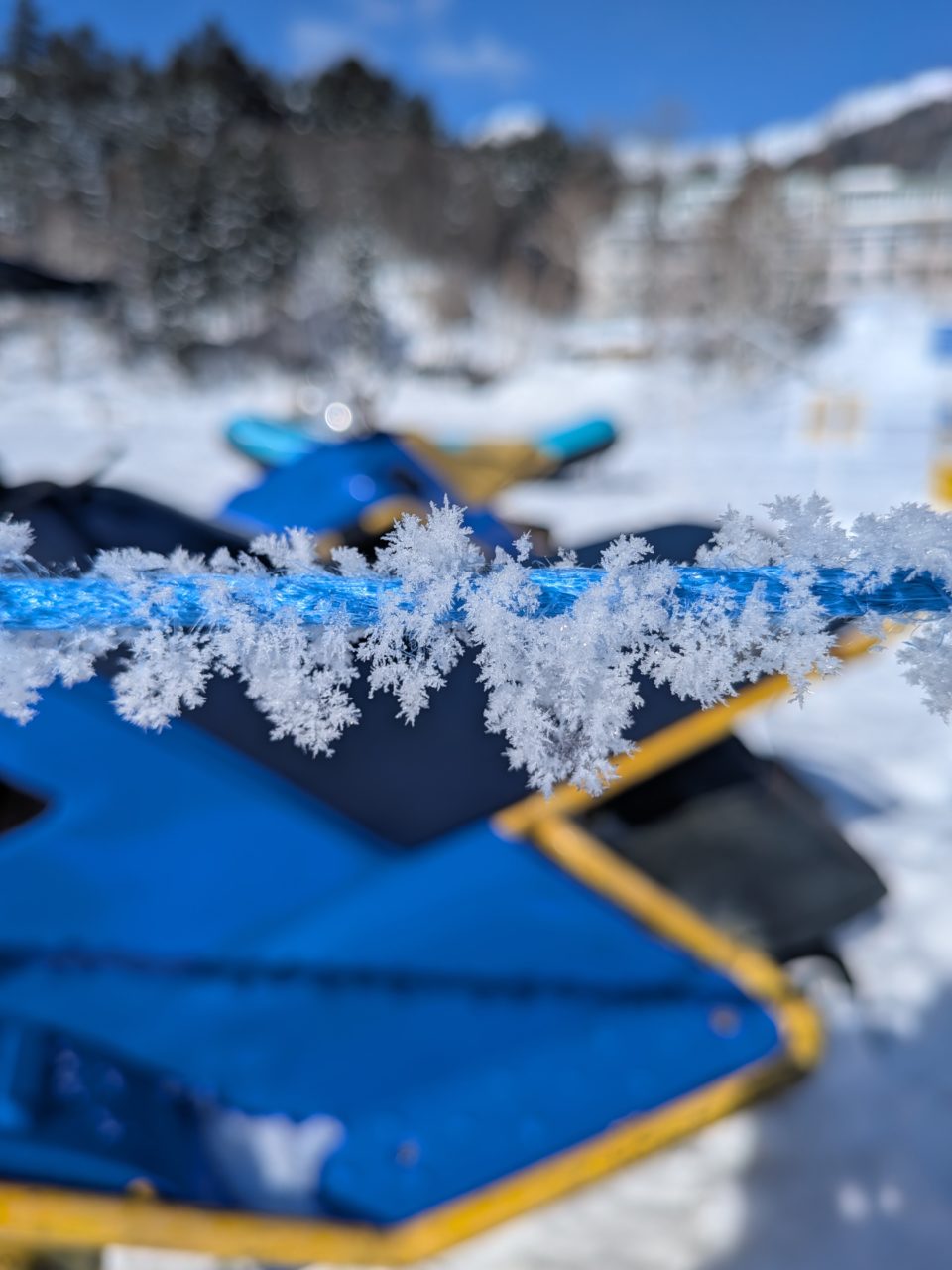 最後の仕事の日となった今日は、世界で唯一の氷上の露天風呂の番台とモービルの係員をした。朝一で湖のひょうめ表面の氷を眺められるポイントでは珍しい氷の花が咲いていた。美しい自然の創造物を見つめながら活動の終わりをかんじていた。