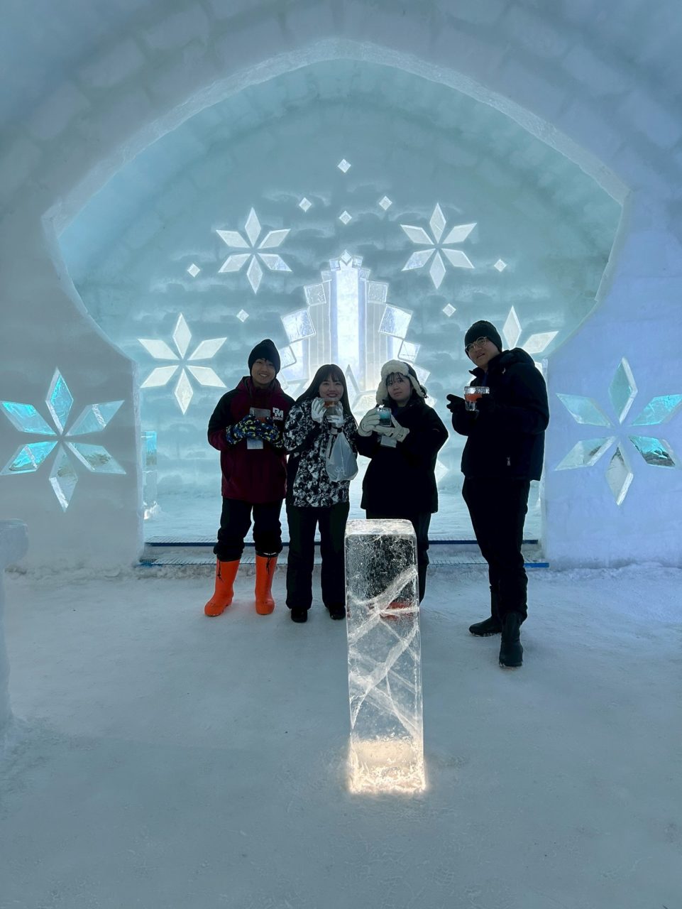 今日はメンバー4人とも作業がお休みだったので、みんなでコタンの外にお出かけしました!バスに乗って、まずは道の駅しかおいへ。地元のお店の食べ物やハンドメイドの雑貨がたくさん並んでいて、みんなそれぞれ気になるものを見つけてお買い物を楽しみました。その後は、北海道のコンビニといえば!のセイコーマートへ。北海道に来たら絶対に行きたいと思っていた場所だったので、行くだけでとてもテンションが上がりました!そして、一面雪景色の中を40分ほど歩いて、最終目的地の「大草原の小さな家」へ。しかし…なんと臨時休業!そこで予定を変更して、隣にある「roku」というカフェでケーキを食べながらゆっくり過ごしました。ケーキはどれも美味しそうで迷いましたが、私はシフォンケーキを選びました。ふわふわでとても美味しかったです!コタンに戻ってからは、アイスバーで氷のグラス作り体験もしました。氷を削ってオリジナルのグラスを作る体験はとても貴重で、メンバーそれぞれ個性豊かなグラスが完成しました!そのグラスで飲むドリンクはとても冷たくて、特別な美味しさでした。