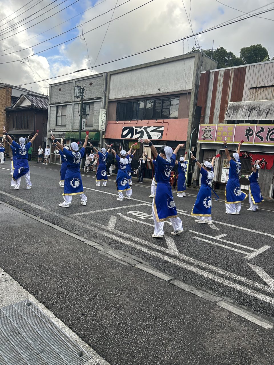 8日目の午後は、四万十市で開催された市民祭のお手伝いをさせていただきました。会場では、地域の方々によるさまざまな伝統的な踊りが披露され、活気に満ちた雰囲気を間近で感じることができました。私の担当は、踊り子の方々にドリンクを配る補助でした。踊りを終えた方々に冷たい飲み物を渡すたびに、「ありがとう」と笑顔で声をかけていただき、その度に自分の役割が誰かの役に立っていることを実感し、とてもやりがいを感じました。また、祭りの終盤には神輿の担ぎ手へのサポートとして、うちわで風を送る補助を行いました。その後、参加者の勧めで実際に神輿を担ぐ体験をする機会を得ました。外部から見学する際には単なる賑やかな行事の一部に見えていましたが、実際に担いでみると、その重量や掛け声に合わせた一体感、地域の人々の熱意を直接感じることができました。地域文化の一端を体験し、その継承に携わる機会となったことは、大変貴重な学びとなりました。