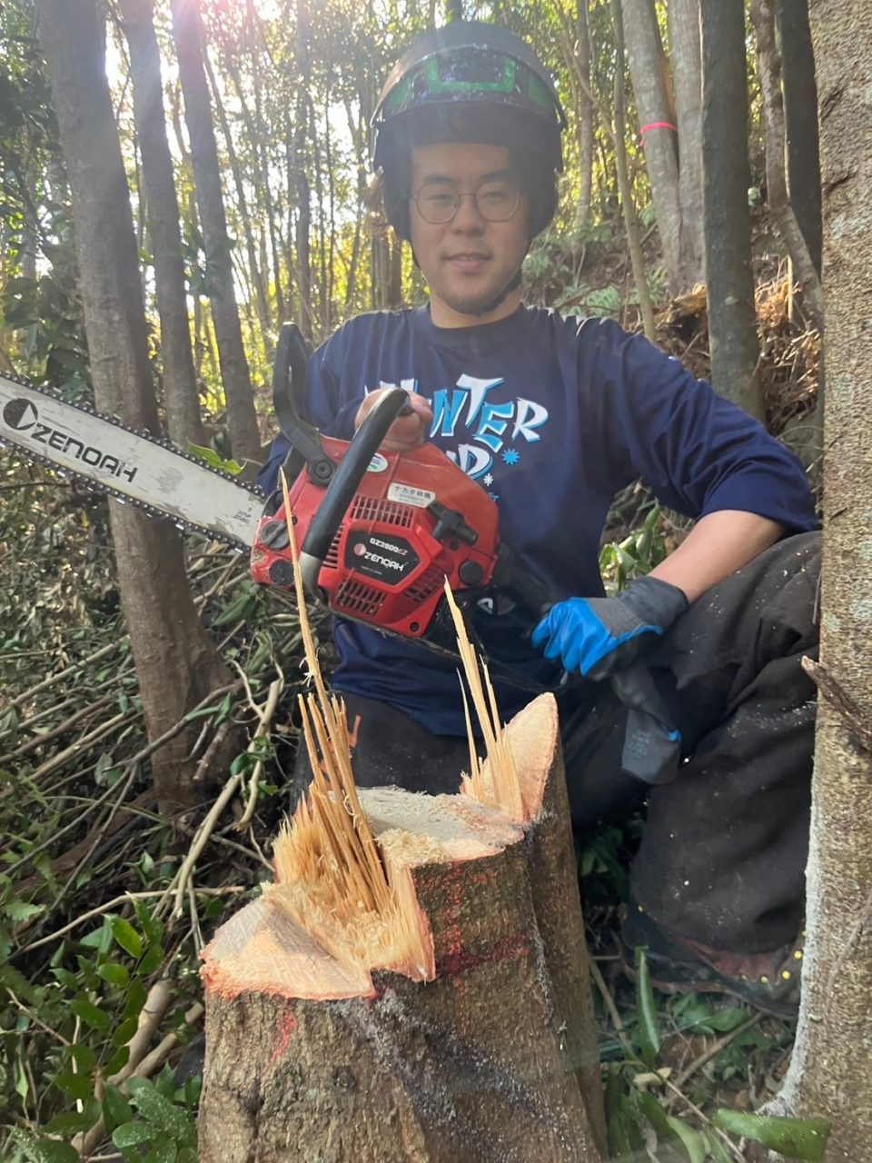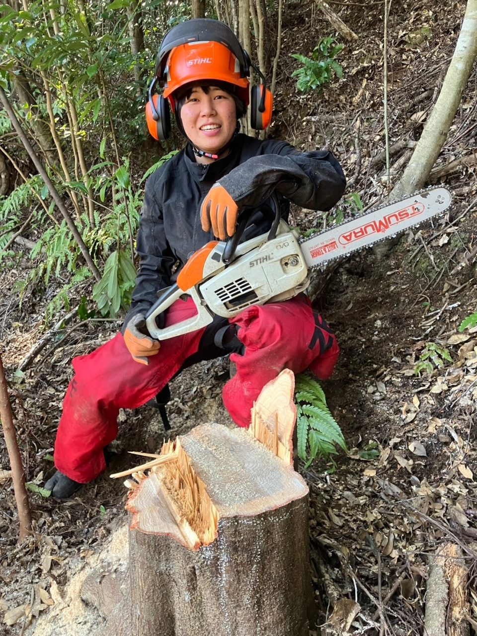 山での作業は、平地よりも難しいけど自分で考えて倒した感覚がものすごかったです!