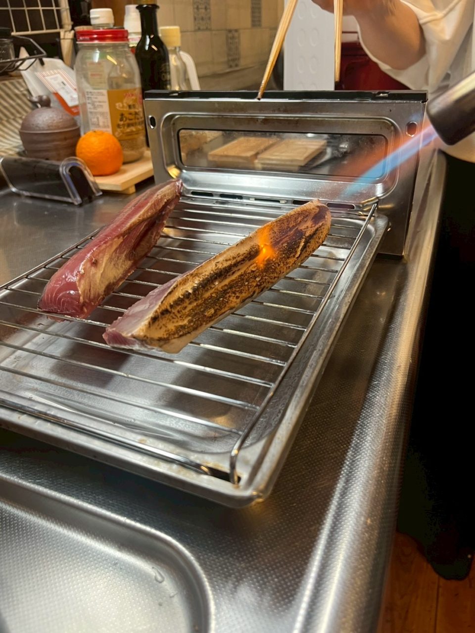 また、地元では完成した状態で売られているのをたまに見るカツオのたたきを、切り身からガスバーナーでつくるなど、普段の生活ではできないような経験を初日からすることができ、この10日間がより楽しみなものになりました!